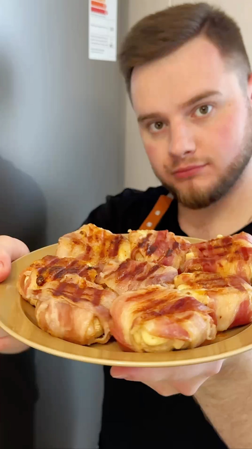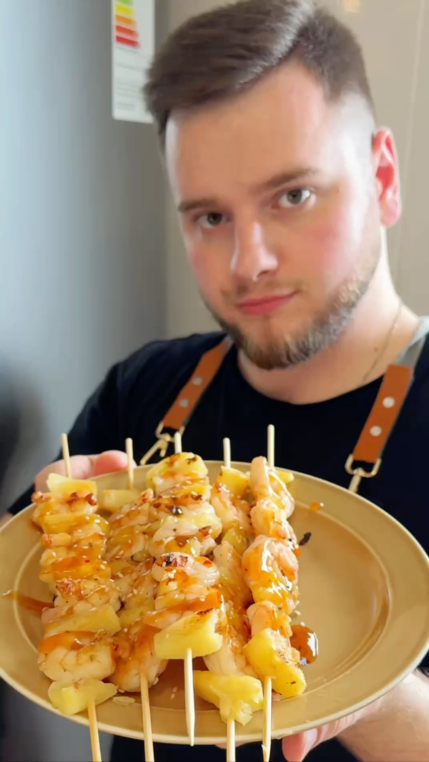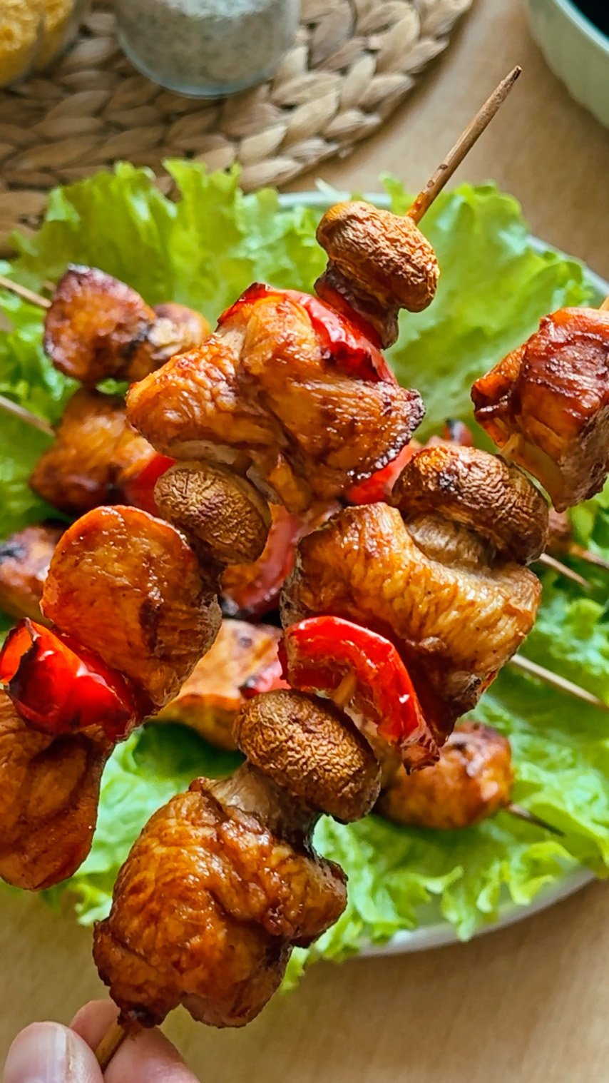 Нанизываем на шпажки и выпекаем в аэрогриле при 200 градусах 15 минут.
