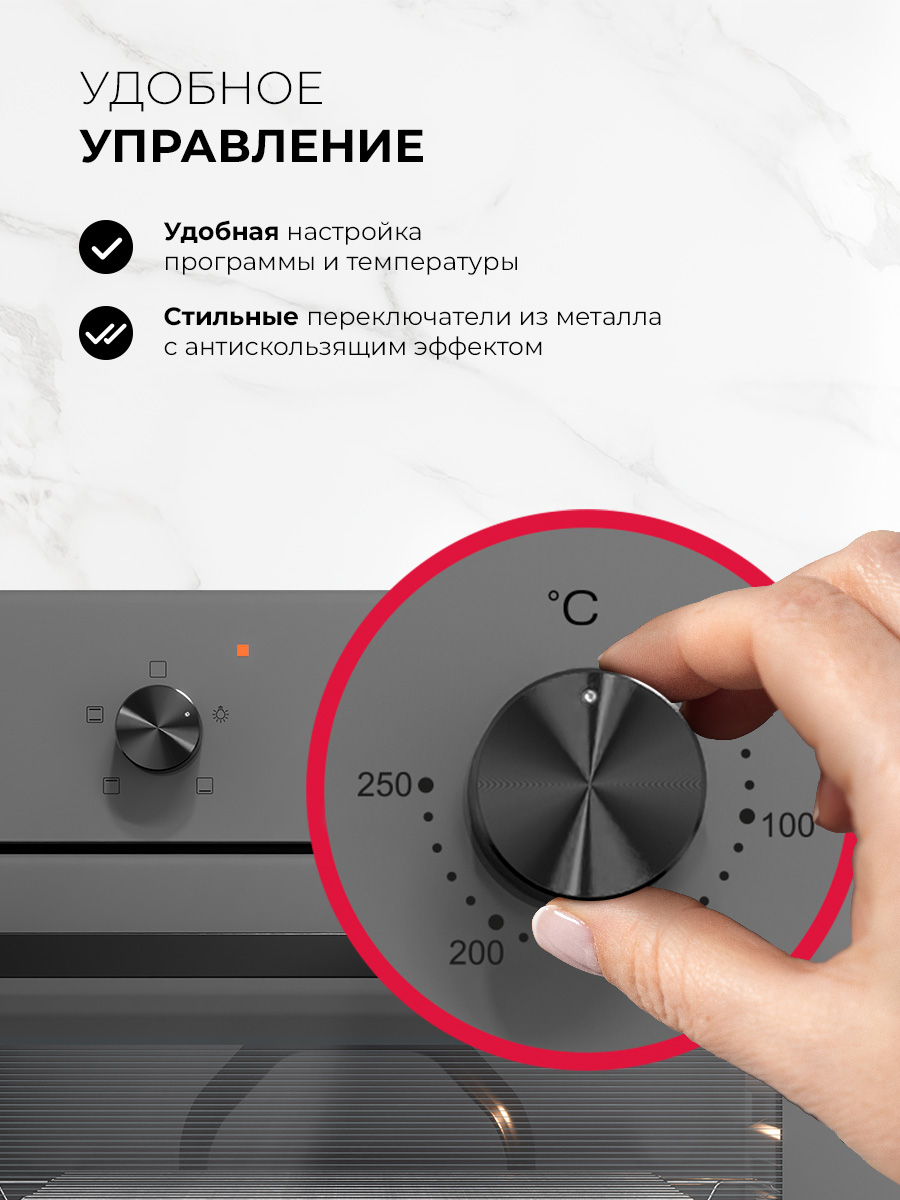 Встраиваемый электрический духовой шкаф LEX EDM 040 GR серого цвета — все нужное и ничего лишнего. Модель гармонично дополнит интерьер современной кухни. Духовка имеет стандартные размеры встраивания 60 см, снабжена комфортной подсветкой, механическим управлением, традиционным режимом приготовления, нижним и верхним нагревом. Эмаль легкой очистки делает уход простым и эффективным. Тангенциальное охлаждение обеспечивает движение холодного воздуха вокруг духовки, предупреждая нагрев мебели и способствуя равномерному приготовлению. Благодаря системе SnapOff дверца легко снимается, облегчая уход. Двойное стекло LEX EDM 040 GR надежно защищает от ожогов.