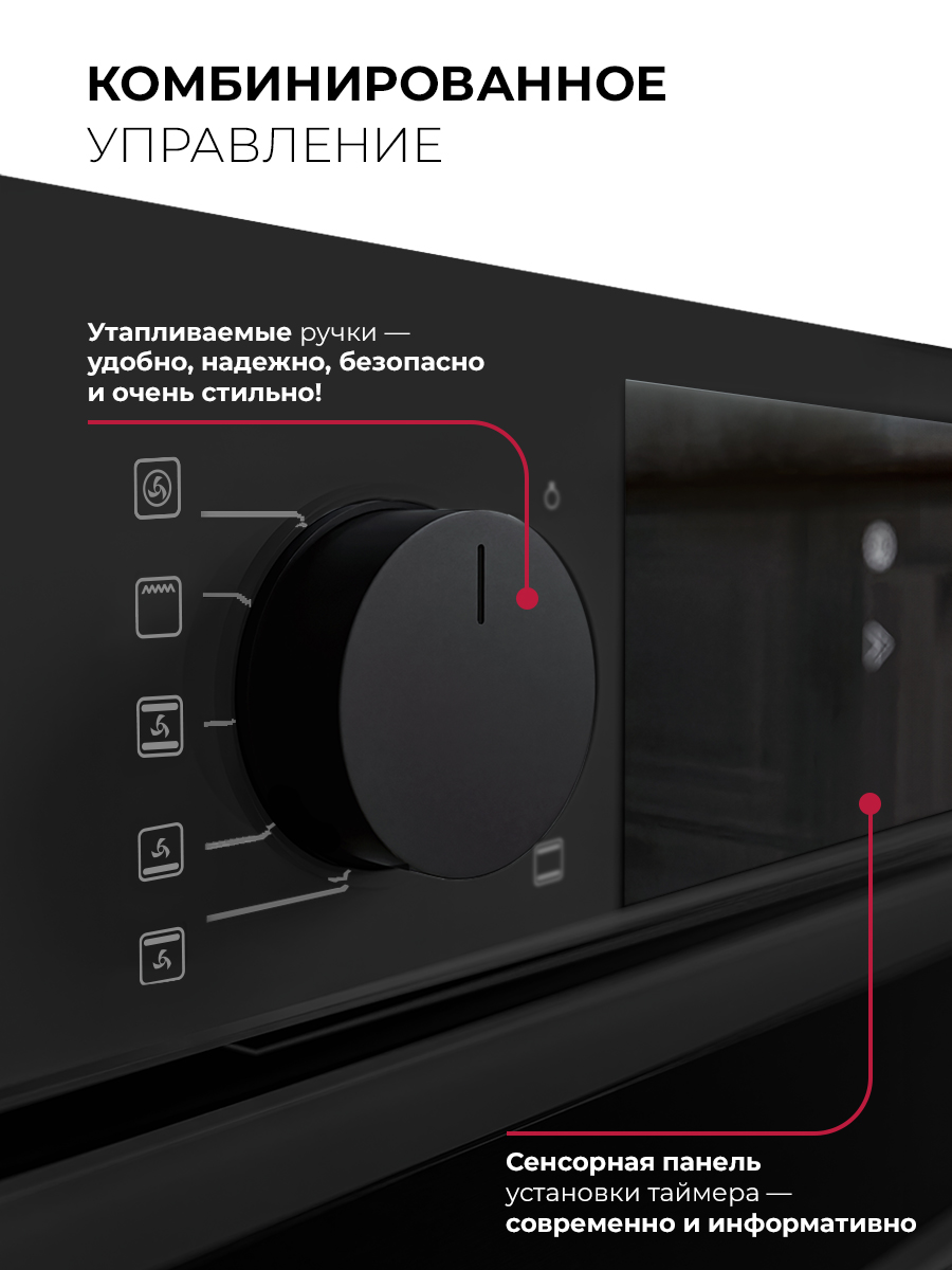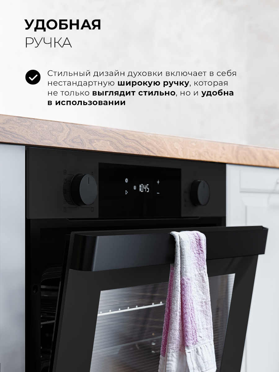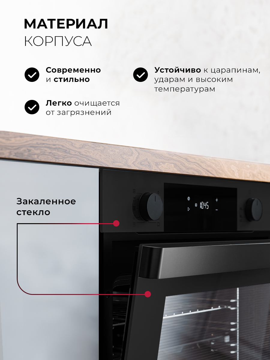 Духовой шкаф LEX EDP 610 Wide Series — сочетание удобства и функциональности Эта модель серии Wide выделяется стильной широкой ручкой, наличием 10 программ и смешанным управлением с LED экраном. Вместительная камера объемом 72 литров, обеспечит удобство и комфорт в использовании. Тройное стекло дверцы гарантирует отличную теплоизоляцию, сохраняя стабильную температуру внутри шкафа. Хромированные телескопические направляющие — удобство и безопасность в использовании Духовой шкаф LEX EDP 610 Wide Series оснащен хромированными телескопическими направляющими, которые обеспечивают легкий доступ к блюдам во время готовки. Они позволяют безопасно и удобно извлекать противни, минимизируя риск ожогов и облегчая процесс приготовления. Широкая цветовая палитра для идеального сочетания с вашим интерьером Модель LEX EDP 610 Wide Series доступна в различных цветовых решениях: White (белый), Black (черный), Dark Inox (темная нержавеющая сталь), Grey (серый) и Inox (нержавеющая сталь). Такой выбор позволяет подобрать духовку, которая гармонично впишется в дизайн вашей кухни. Black (черный) Черный цвет придает духовке элегантность и строгость, делая ее стильным акцентом в современном интерьере. LEX EDP 610 Wide Series — 10 режимов для ваших кулинарных экспериментов Широкий выбор режимов позволяет адаптировать духовку под любой рецепт. Среди них — традиционный нагрев, конвекция с кольцевым нагревательным элементом, гриль и размораживание, что делает модель универсальной для готовки любых блюд. Мощность гриля 1200 Вт и температурный диапазон от 50 до 270°C обеспечивают быстрое и качественное приготовление пищи с идеальной текстурой. Точная настройка для удобного использования Смешанное управление сочетает сенсорные и механические элементы, обеспечивая точную регулировку параметров. LED-дисплей отображает все необходимые данные, а цифровой таймер помогает задать точное время готовки. Хромированные телескопические направляющие добавляют удобства, позволяя безопасно размещать и извлекать противни на нужной высоте. Безопасность и простота ухода Тройное стекло дверцы защищает от перегрева, а термостат обеспечивает дополнительную надежность. Каталитическая система очистки значительно облегчает уход за духовкой, помогая легко удалять жировые загрязнения. Быстросъемная дверца и набор телескопических направляющих делают процесс эксплуатации комфортным и безопасным. Идеальные результаты для каждого блюда Благодаря режимам конвекции и гриля, блюда готовятся равномерно и получают аппетитную корочку. Духовой шкаф с энергоэффективностью класса A позволяет готовить не только вкусно, но и экономично, делая этот процесс максимально приятным и удобным.