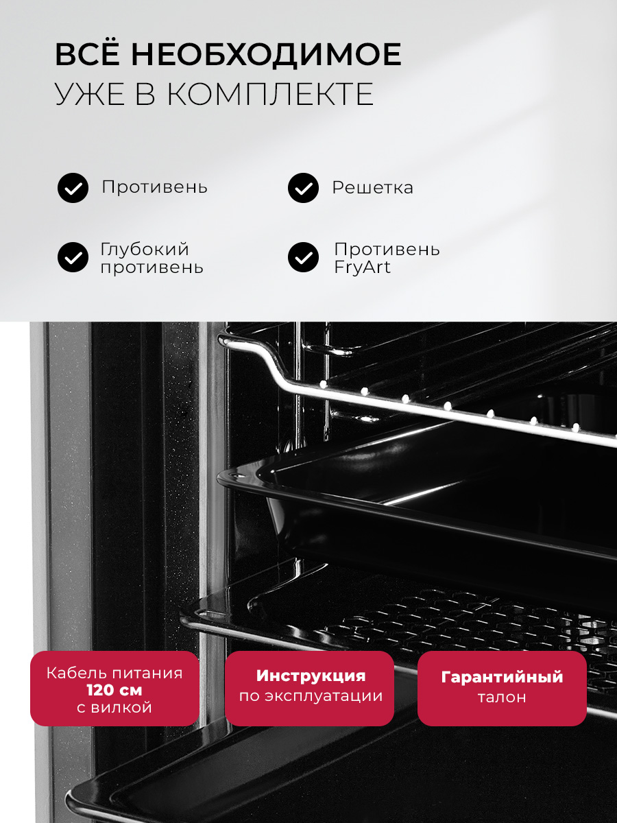Этот духовой шкаф создан для тех, кто хочет максимум возможностей в одном приборе. С LEX EDP 680 вы получаете 8 различных режимов работы, включая эксклюзивную функцию FryArt, которая придаст вашим блюдам непревзойдённую текстуру. Хотите идеальный гриль, конвекцию или нижний нагрев? Эта модель справится с любой задачей.