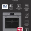 Духовой шкаф относится к серии MAX, основная особенность которой — увеличенный объем рабочей камеры (78 литров). Кроме того, эти модели имеют утапливаемые ручки управления, а в дверце установлено стекло немецкого бренда SCHOTT.