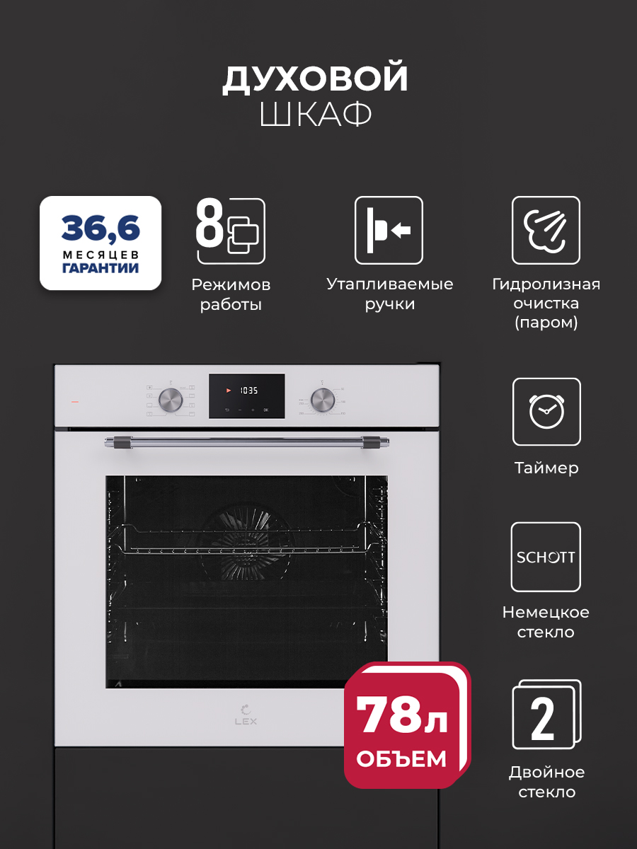 Этот духовой шкаф создан для тех, кто хочет максимум возможностей в одном приборе. С LEX EDP 680 вы получаете 8 различных режимов работы, включая эксклюзивную функцию FryArt, которая придаст вашим блюдам непревзойдённую текстуру. Хотите идеальный гриль, конвекцию или нижний нагрев? Эта модель справится с любой задачей.