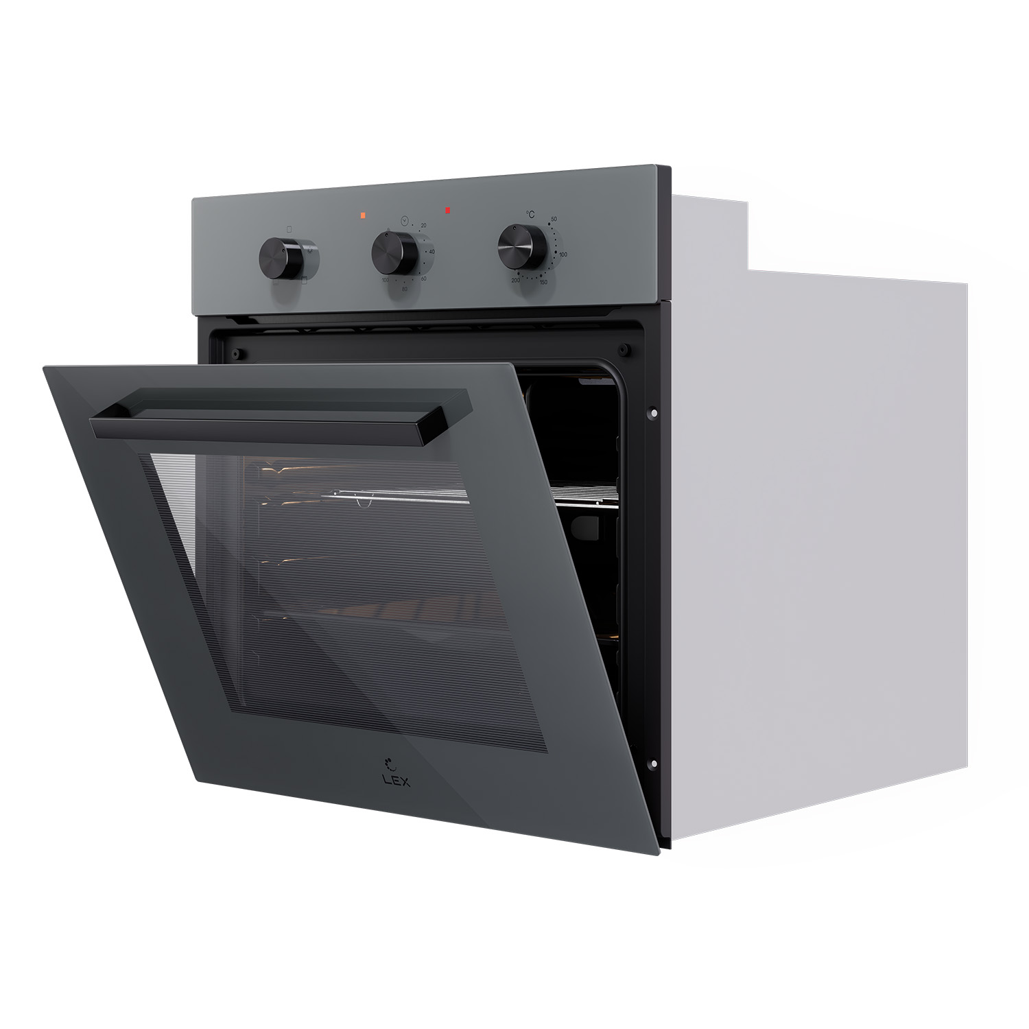 Встраиваемый электрический духовой шкаф LEX EDM 047 GR с серой панелью управления в цвет корпуса и черной ручкой. Духовка обладает стандартными размерами встраивания 60 см, снабжена механическим управлением и яркой подсветкой. Имеются традиционный режим приготовления, а также независимые друг от друга нижний и верхний нагревы. Программируемый таймер позволяет настраивать и контролировать процесс приготовления. Эмаль легкой очистки делает уход за техникой максимально простым. Тангенциальное охлаждение предупреждает нагрев кухонной мебели и обеспечивает равномерное приготовление блюд. Двойное стекло дверцы модели LEX EDM 047 GR надежно защищает от ожогов.