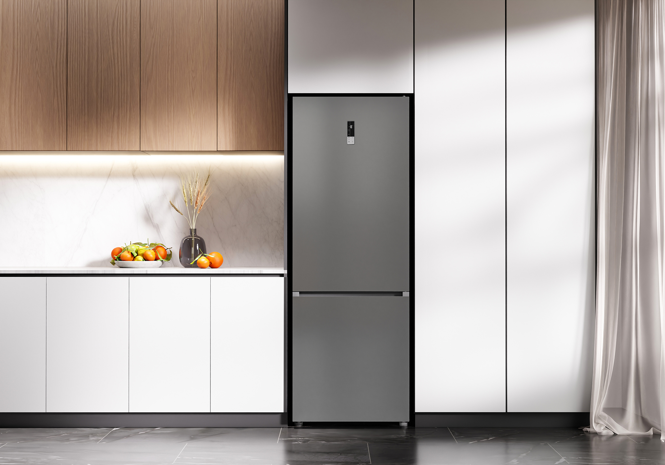 LED-лампы обеспечивают яркий свет, помогая вам быстро найти все, что нужно. Электронная панель управления делает настройку параметров интуитивно понятной. А перенавешиваемые двери делают холодильник LEX LKB185 универсальным для любой кухни.