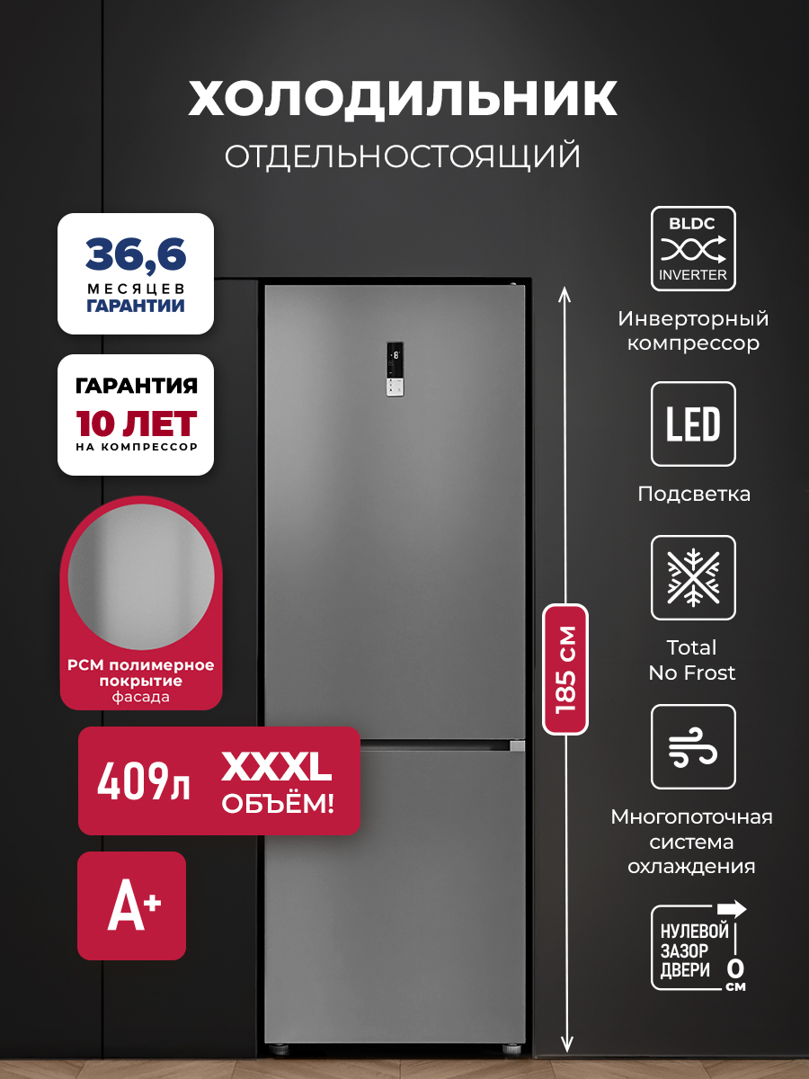 Холодильник LEX LKB185 оснащен современным инверторным компрессором, который гарантирует эффективную и практически бесшумную работу. Он также обеспечивает низкий расход энергии и долго поддерживает температуру без электропитания. Технология Total No Frost значительно упрощает обслуживание и помогает устанавливать оптимальную температуру и влажность.