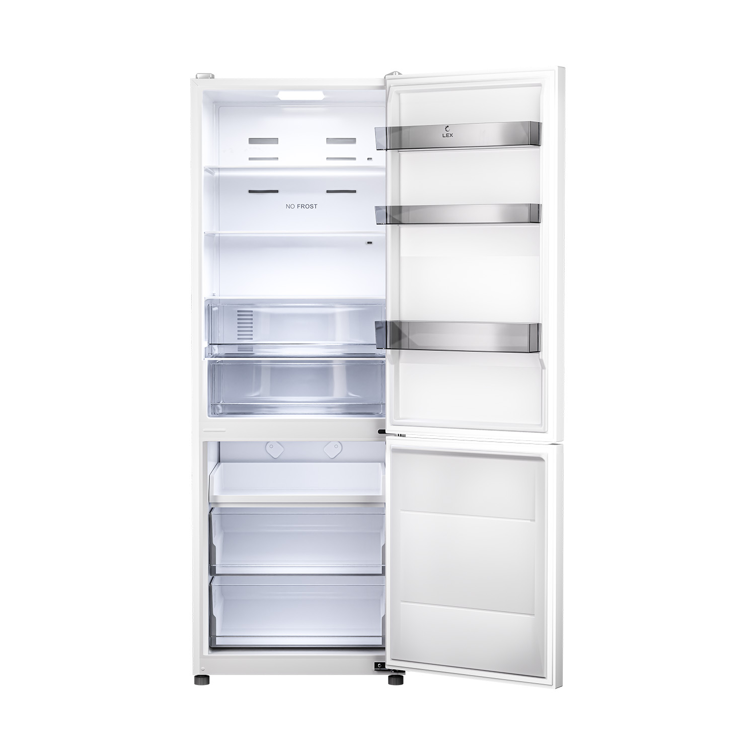 LED-лампы обеспечивают яркий свет, помогая вам быстро найти все, что нужно. Электронная панель управления делает настройку параметров интуитивно понятной. А перенавешиваемые двери делают холодильник LEX LKB185 универсальным для любой кухни.