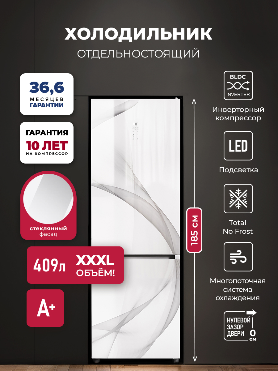 Холодильник LEX LKB185 оснащен современным инверторным компрессором, который гарантирует эффективную и практически бесшумную работу. Он также обеспечивает низкий расход энергии и долго поддерживает температуру без электропитания. Технология Total No Frost значительно упрощает обслуживание и помогает устанавливать оптимальную температуру и влажность.