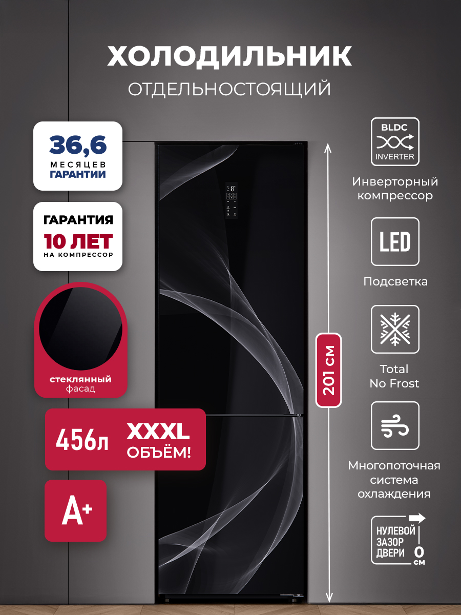 Холодильник LEX LKB201 оснащен современным инверторным компрессором, который гарантирует эффективную и практически бесшумную работу. Он также обеспечивает низкий расход энергии и долго поддерживает температуру без электропитания. Технология Total No Frost значительно упрощает обслуживание и помогает устанавливать оптимальную температуру и влажность.