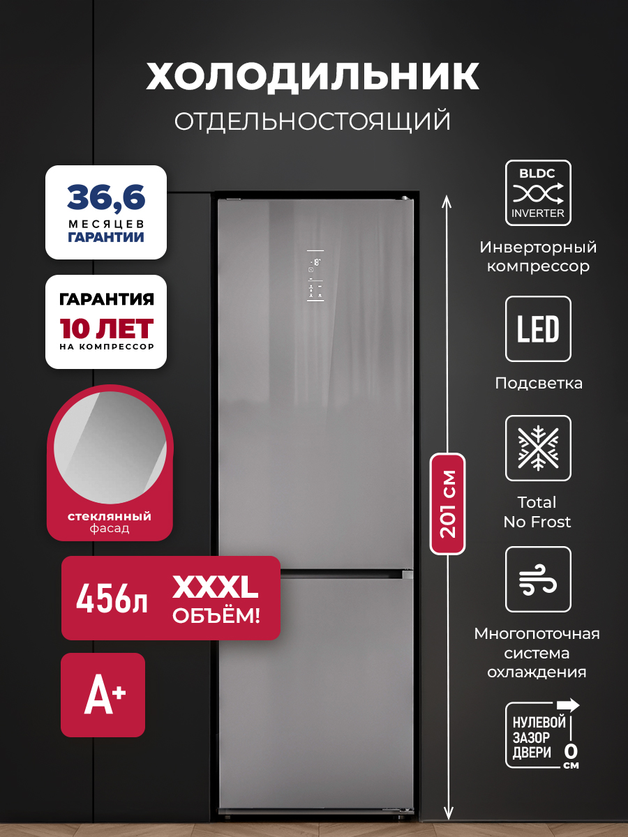 Холодильник LEX LKB201 оснащен современным инверторным компрессором, который гарантирует эффективную и практически бесшумную работу. Он также обеспечивает низкий расход энергии и долго поддерживает температуру без электропитания. Технология Total No Frost значительно упрощает обслуживание и помогает устанавливать оптимальную температуру и влажность.