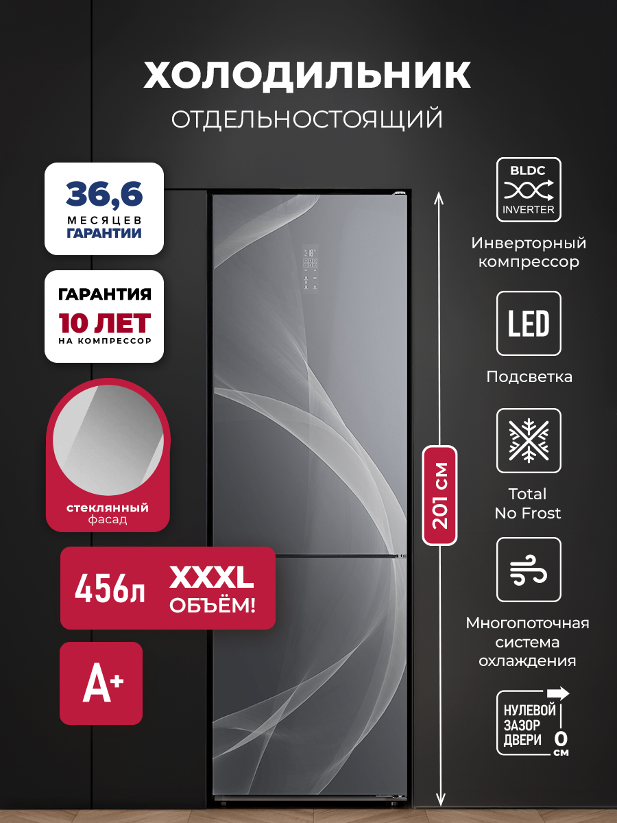Два отделения с полезным объемом 456 литров дают возможность хранить все блюда и напитки на удобном уровне. Внутреннее пространство холодильника организовано максимально эффективно благодаря регулируемым полкам.