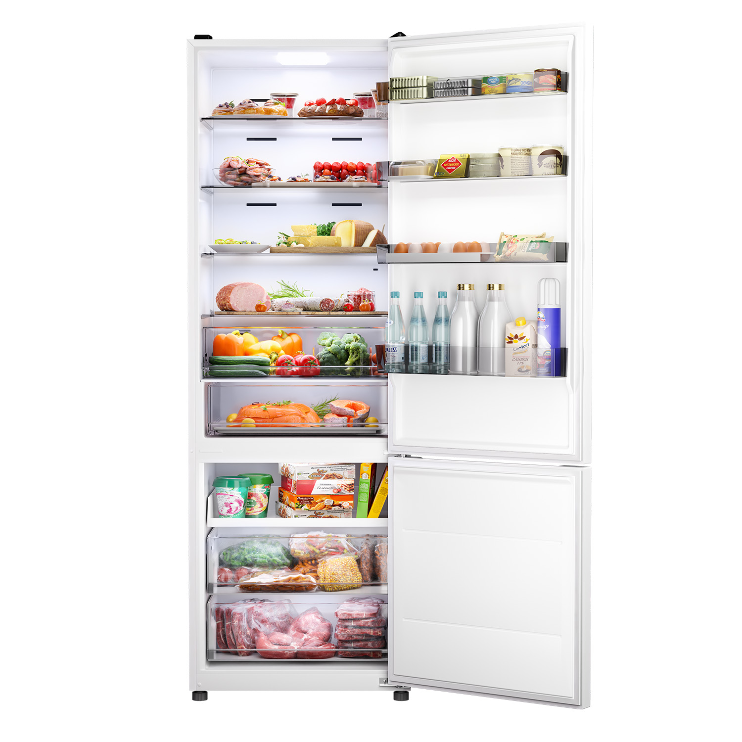 Два отделения с полезным объемом 456 литров дают возможность хранить все блюда и напитки на удобном уровне. Внутреннее пространство холодильника организовано максимально эффективно благодаря регулируемым полкам.