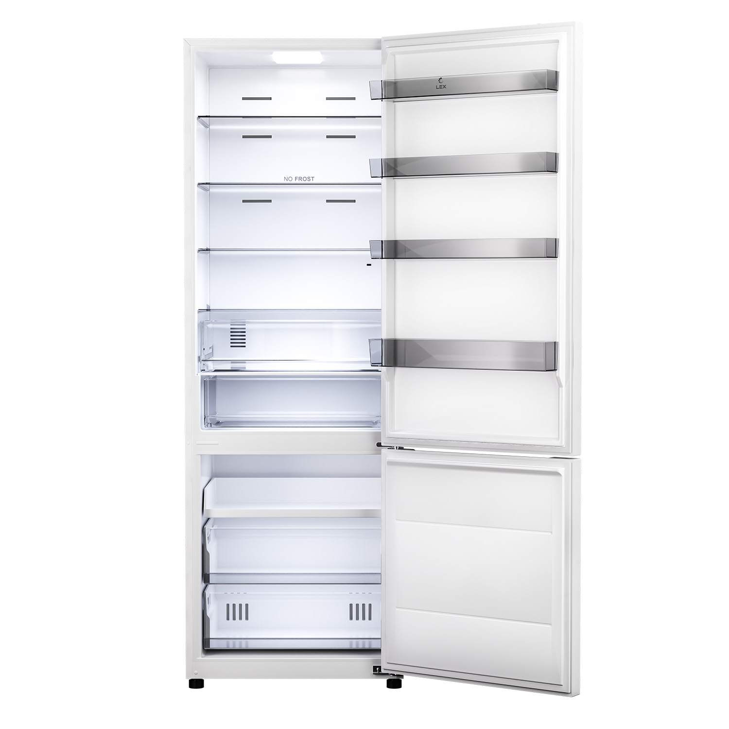 Холодильник LEX LKB201 оснащен современным инверторным компрессором, который гарантирует эффективную и практически бесшумную работу. Он также обеспечивает низкий расход энергии и долго поддерживает температуру без электропитания. Технология Total No Frost значительно упрощает обслуживание и помогает устанавливать оптимальную температуру и влажность.
