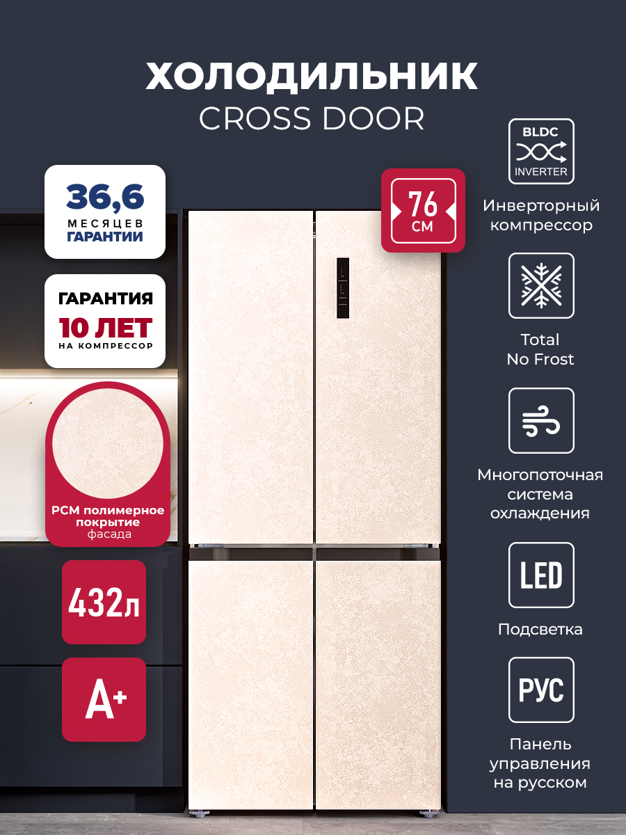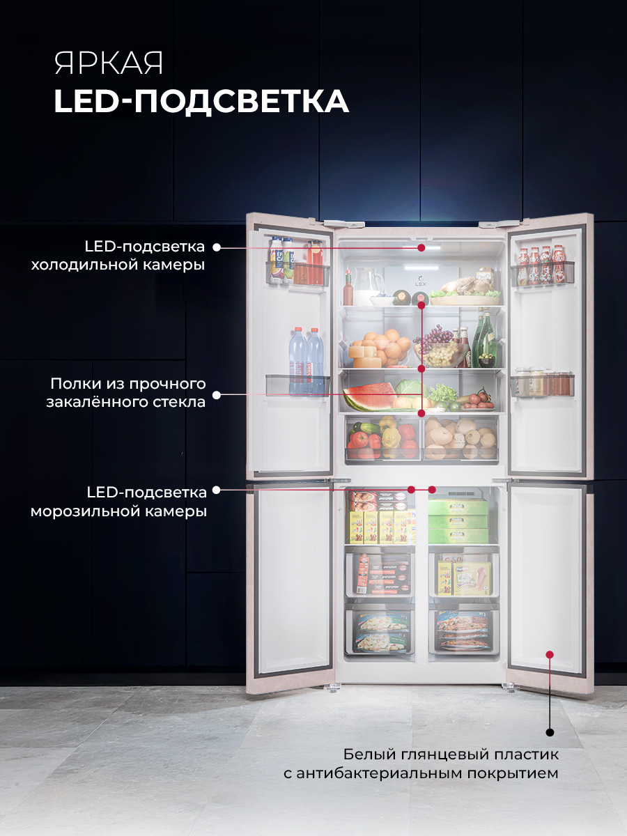 LCD432 — холодильник с двумя морозильными отделениями и самой современной технической начинкой. Благодаря конструкции CROSS DOOR и удобной электронной панели управления со светодиодными индикаторами в рабочих камерах всегда легко поддерживать наиболее подходящие параметры хранения. Большой холодильник с энергоэффективным инверторным компрессором имеет систему охлаждения Total No Frost, поэтому не требует разморозки. Запатентованная вентиляционная система Volume Stream Air равномерно распределяет холодный воздух по всем отделениям и зонам. Яркие LED-лампы помогут быстро найти все любимые продукты даже при максимальной загрузке холодильника. Модель имеет температурный диапазон от +8 °С в холодильном до –23 °С в морозильном отделении. А функция суперзаморозки быстро устанавливает значение –28 °С. Холодильная камера тоже оснащена режимом ускоренного охлаждения. При отключении света также пригодится функция сохранения температуры на 12 часов. Модель представлена в сером и белом металлическом оформлении. Ширина 76 см подойдет для любой, даже небольшой кухни. С холодильником LEX LCD432 ваши мечты станут реальностью!