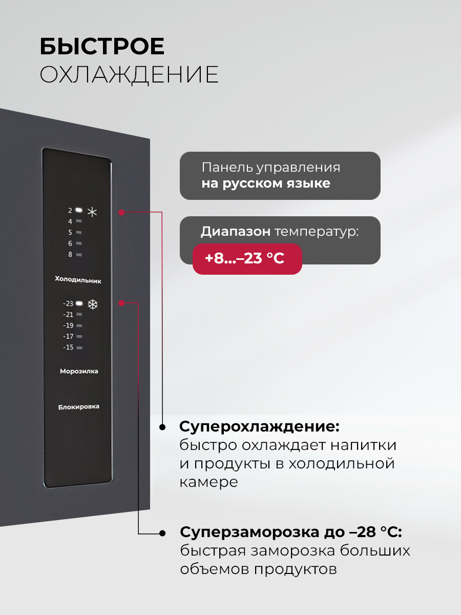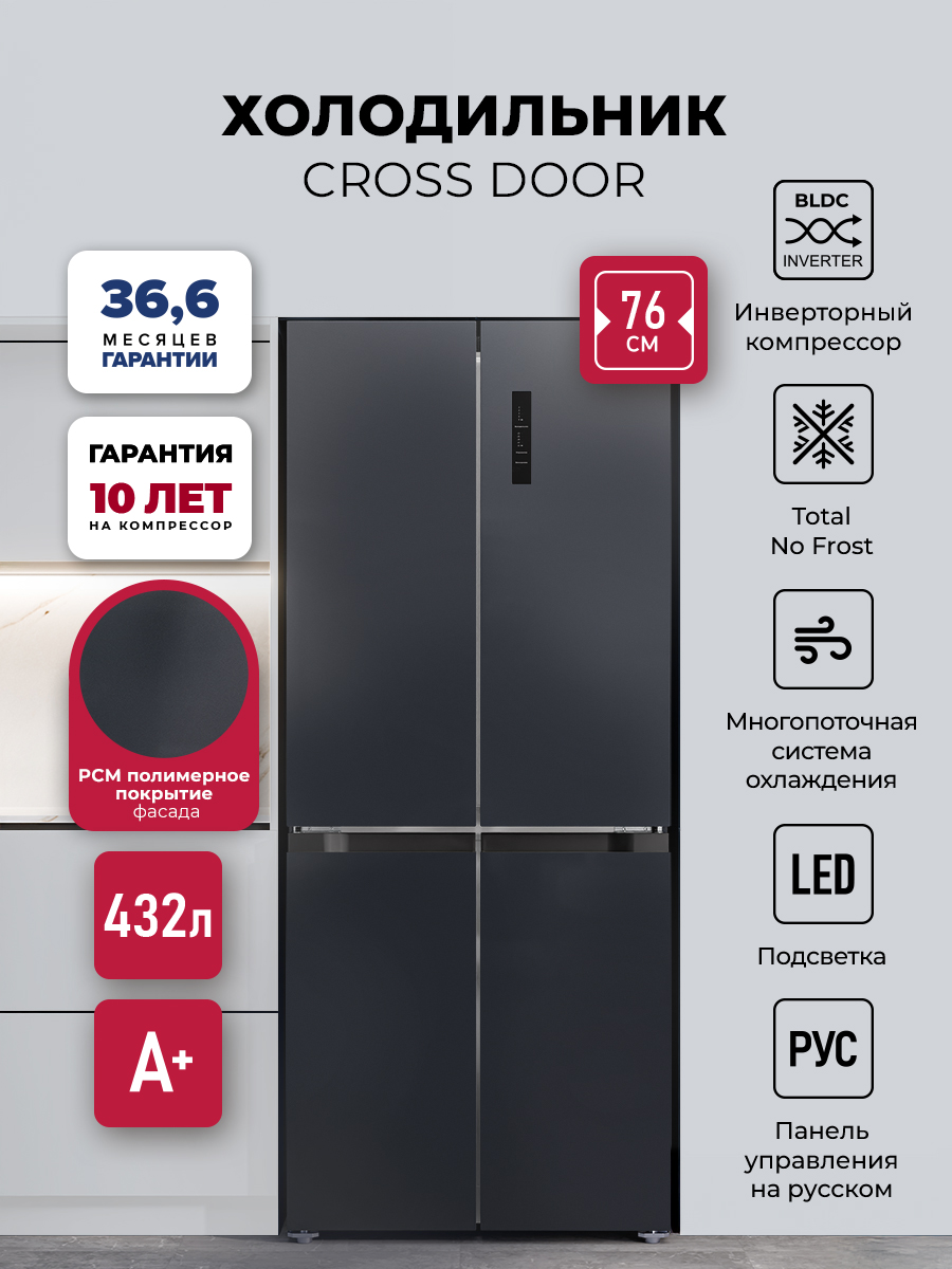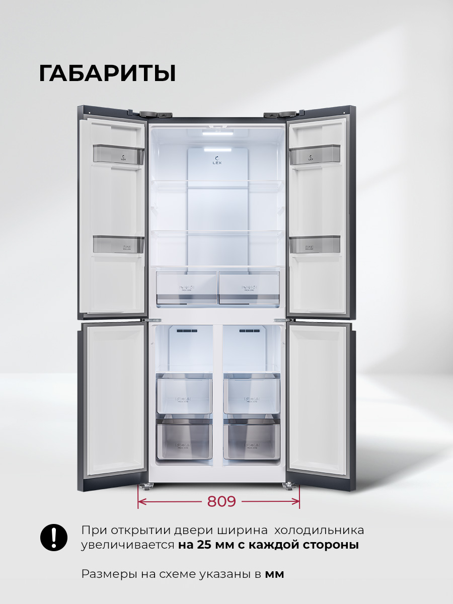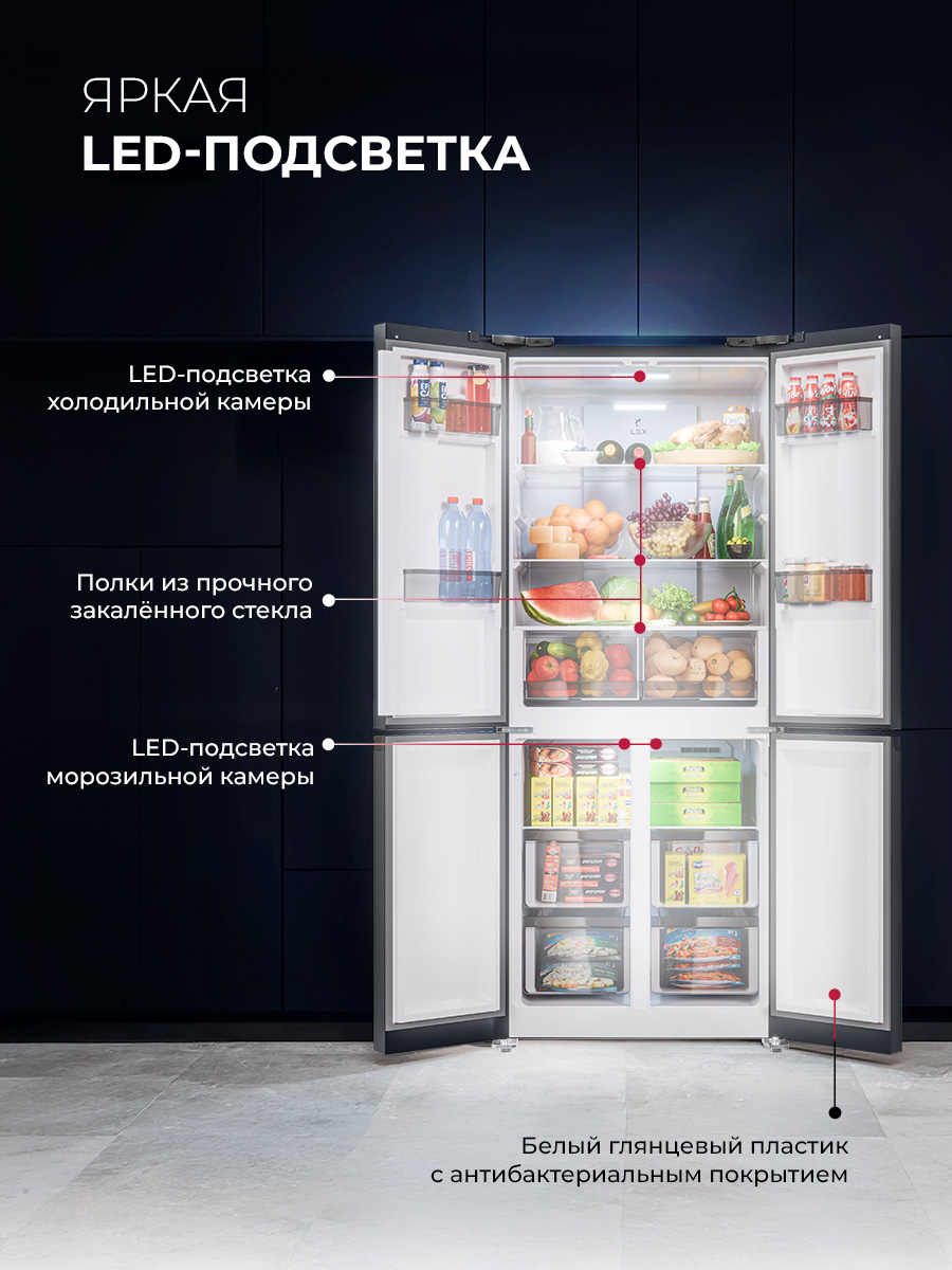 LCD432 — холодильник с двумя морозильными отделениями и самой современной технической начинкой. Благодаря конструкции CROSS DOOR и удобной электронной панели управления со светодиодными индикаторами в рабочих камерах всегда легко поддерживать наиболее подходящие параметры хранения. Большой холодильник с энергоэффективным инверторным компрессором имеет систему охлаждения Total No Frost, поэтому не требует разморозки. Запатентованная вентиляционная система Volume Stream Air равномерно распределяет холодный воздух по всем отделениям и зонам. Яркие LED-лампы помогут быстро найти все любимые продукты даже при максимальной загрузке холодильника. Модель имеет температурный диапазон от +8 °С в холодильном до –23 °С в морозильном отделении. А функция суперзаморозки быстро устанавливает значение –28 °С. Холодильная камера тоже оснащена режимом ускоренного охлаждения. При отключении света также пригодится функция сохранения температуры на 12 часов. Модель представлена в сером и белом металлическом оформлении. Ширина 76 см подойдет для любой, даже небольшой кухни. С холодильником LEX LCD432 ваши мечты станут реальностью!