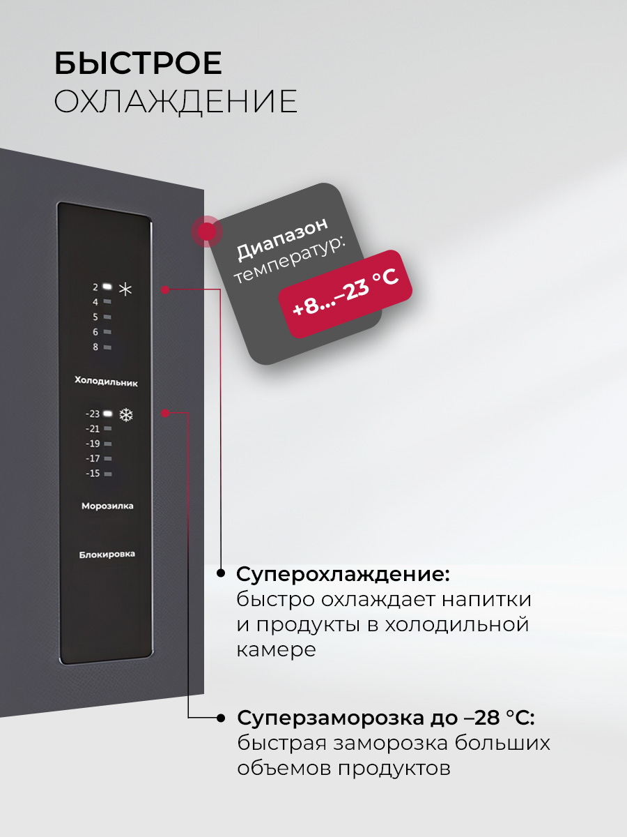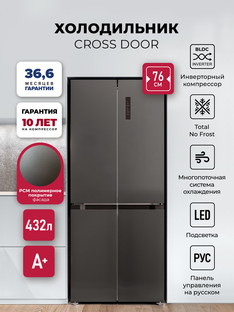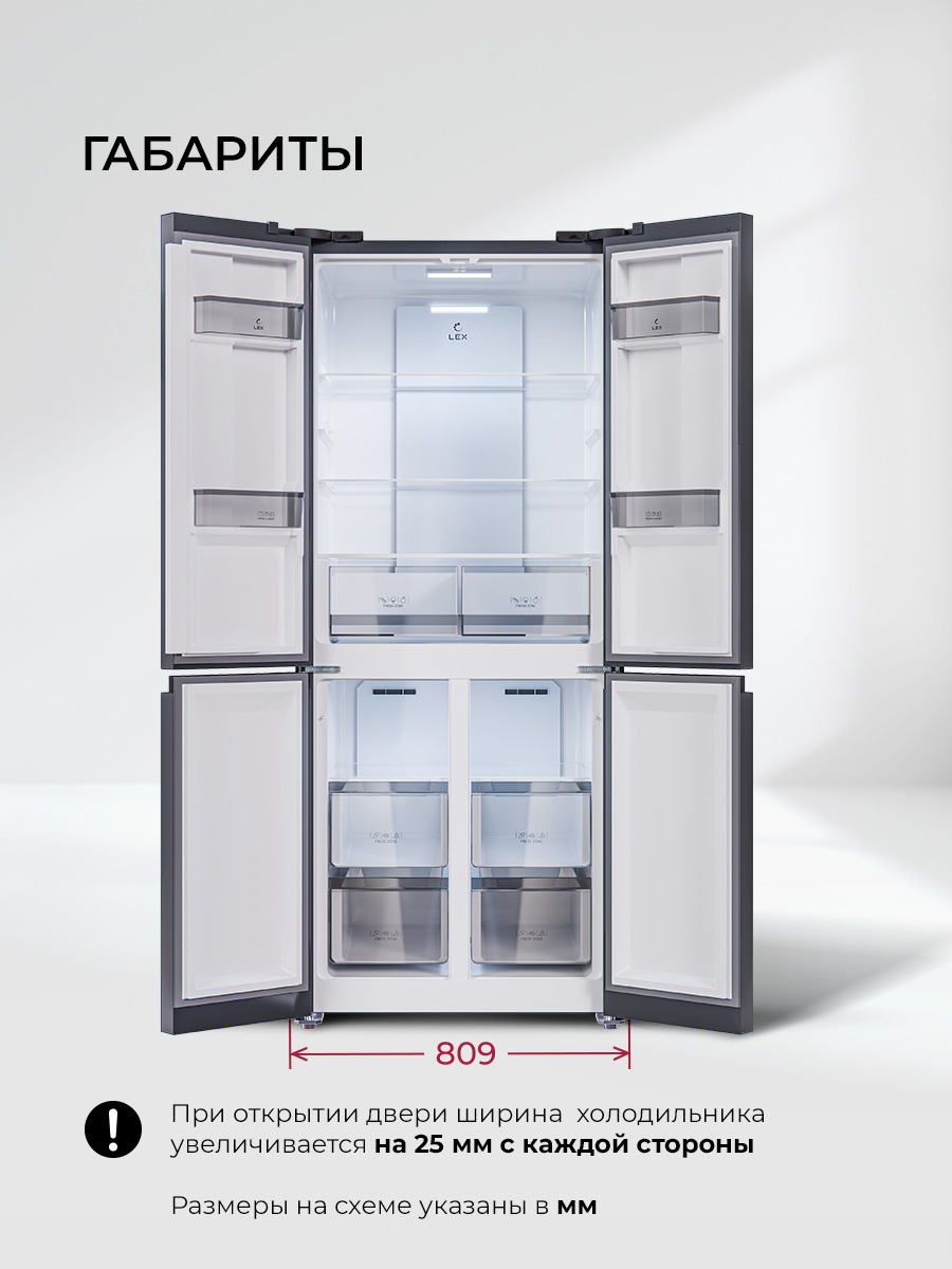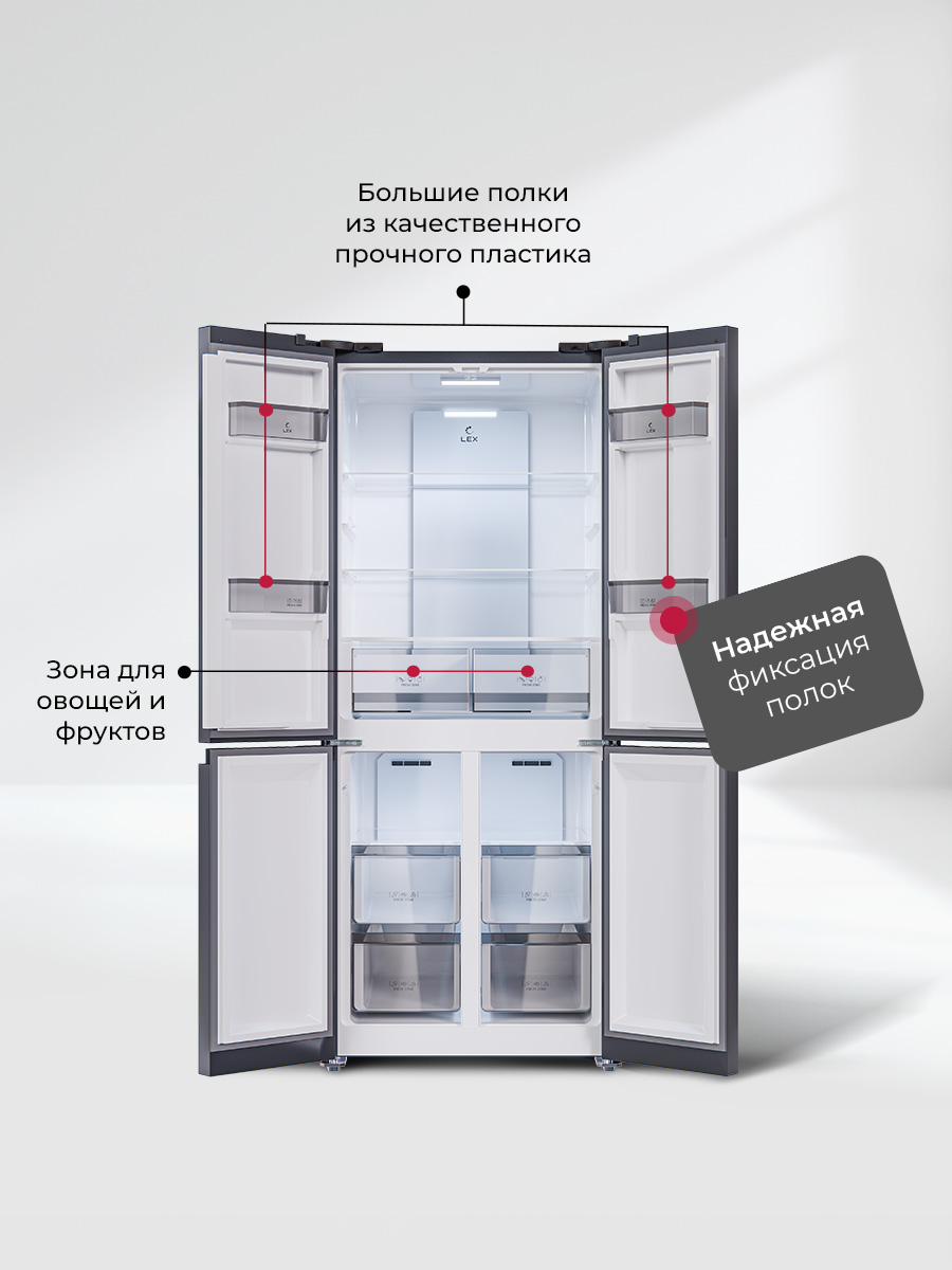 LCD432 — холодильник с двумя морозильными отделениями и самой современной технической начинкой. Благодаря конструкции CROSS DOOR и удобной электронной панели управления со светодиодными индикаторами в рабочих камерах всегда легко поддерживать наиболее подходящие параметры хранения. Большой холодильник с энергоэффективным инверторным компрессором имеет систему охлаждения Total No Frost, поэтому не требует разморозки. Запатентованная вентиляционная система Volume Stream Air равномерно распределяет холодный воздух по всем отделениям и зонам. Яркие LED-лампы помогут быстро найти все любимые продукты даже при максимальной загрузке холодильника. Модель имеет температурный диапазон от +8 °С в холодильном до –23 °С в морозильном отделении. А функция суперзаморозки быстро устанавливает значение –28 °С. Холодильная камера тоже оснащена режимом ускоренного охлаждения. При отключении света также пригодится функция сохранения температуры на 12 часов. Модель представлена в сером и белом металлическом оформлении. Ширина 76 см подойдет для любой, даже небольшой кухни. С холодильником LEX LCD432 ваши мечты станут реальностью!