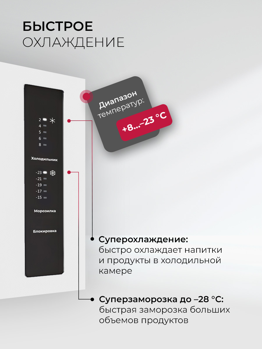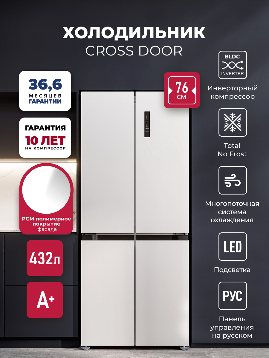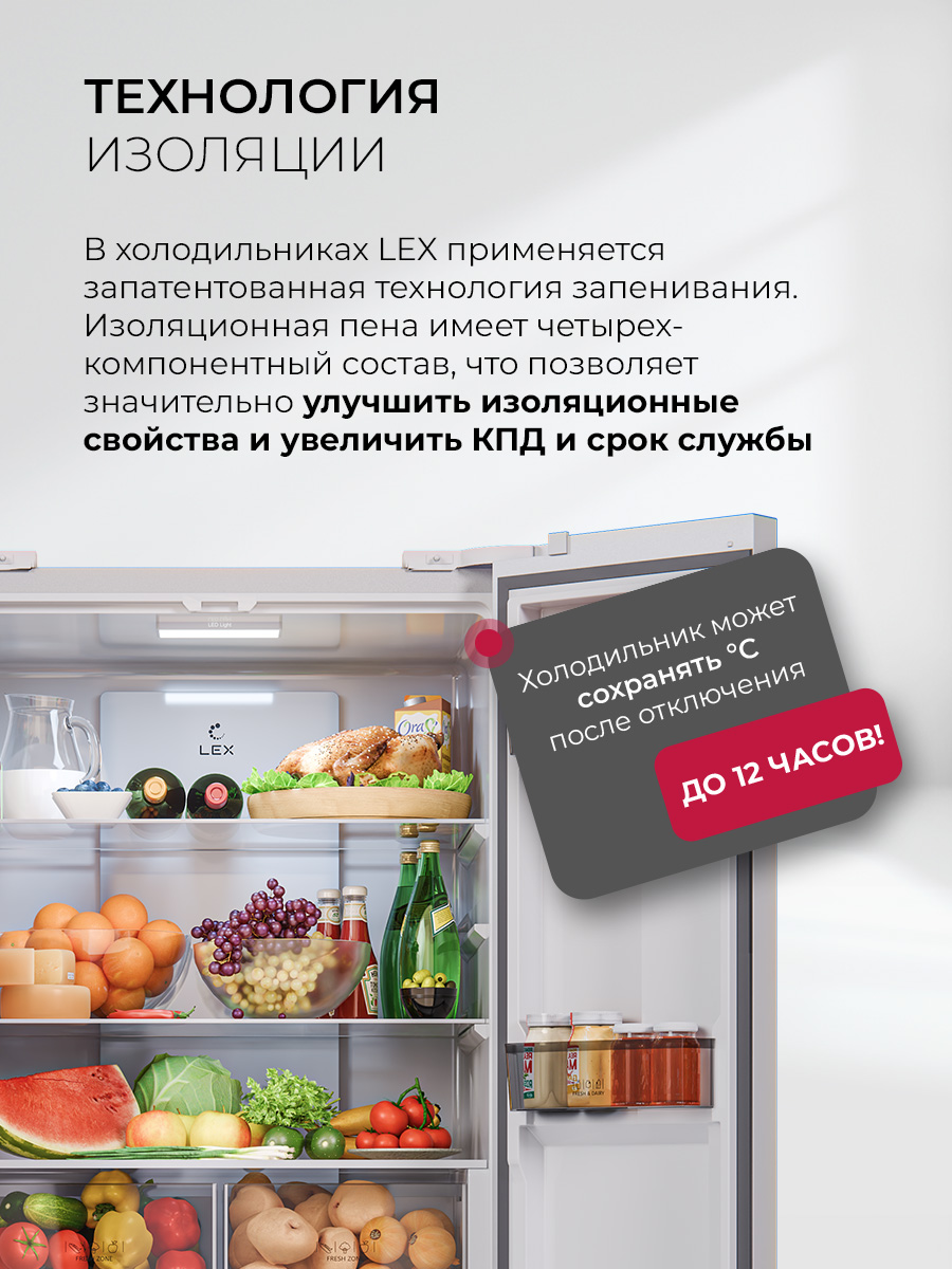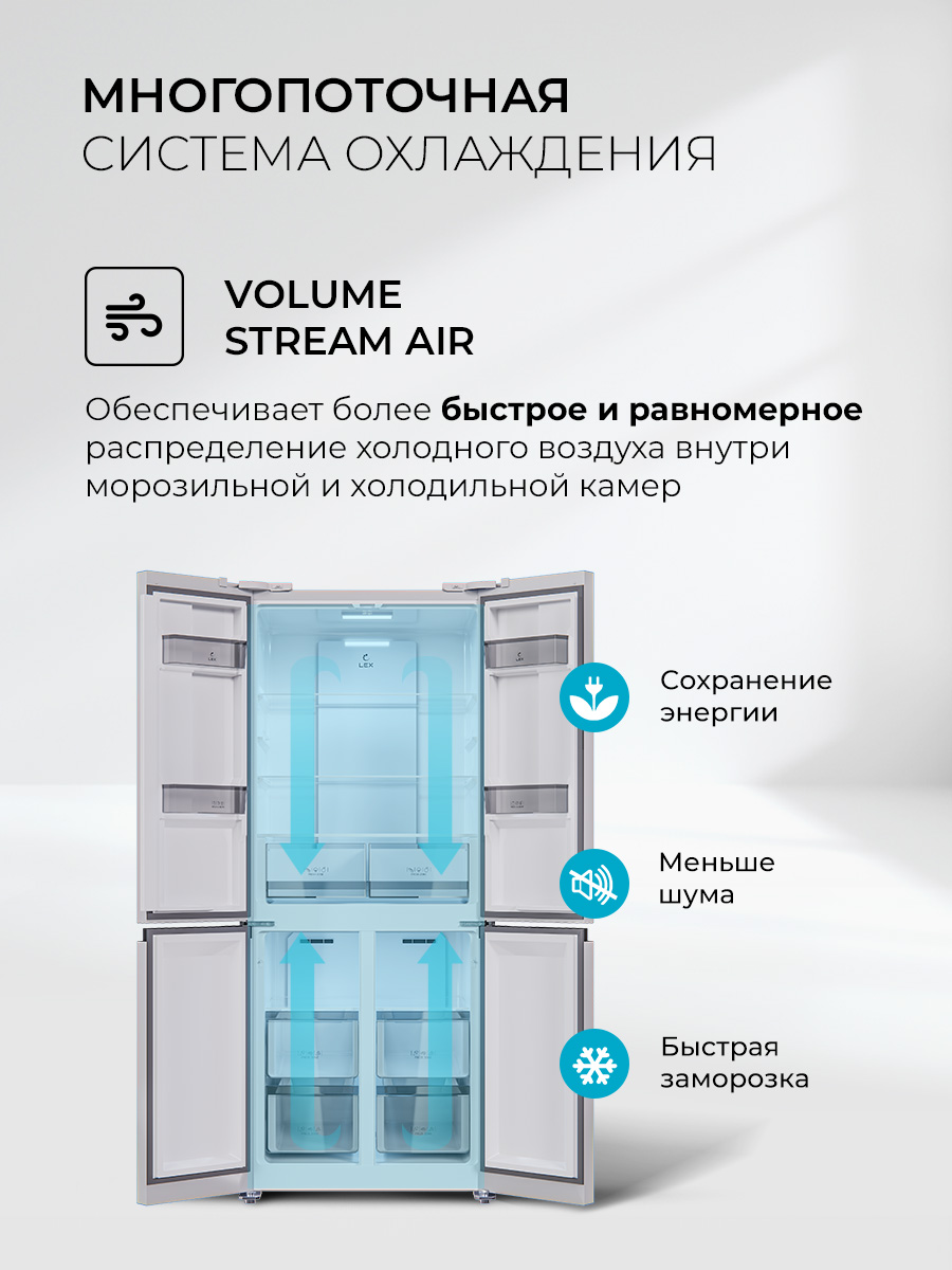 LCD432 — холодильник с двумя морозильными отделениями и самой современной технической начинкой. Благодаря конструкции CROSS DOOR и удобной электронной панели управления со светодиодными индикаторами в рабочих камерах всегда легко поддерживать наиболее подходящие параметры хранения. Большой холодильник с энергоэффективным инверторным компрессором имеет систему охлаждения Total No Frost, поэтому не требует разморозки. Запатентованная вентиляционная система Volume Stream Air равномерно распределяет холодный воздух по всем отделениям и зонам. Яркие LED-лампы помогут быстро найти все любимые продукты даже при максимальной загрузке холодильника. Модель имеет температурный диапазон от +8 °С в холодильном до –23 °С в морозильном отделении. А функция суперзаморозки быстро устанавливает значение –28 °С. Холодильная камера тоже оснащена режимом ускоренного охлаждения. При отключении света также пригодится функция сохранения температуры на 12 часов. Модель представлена в сером и белом металлическом оформлении. Ширина 76 см подойдет для любой, даже небольшой кухни. С холодильником LEX LCD432 ваши мечты станут реальностью!