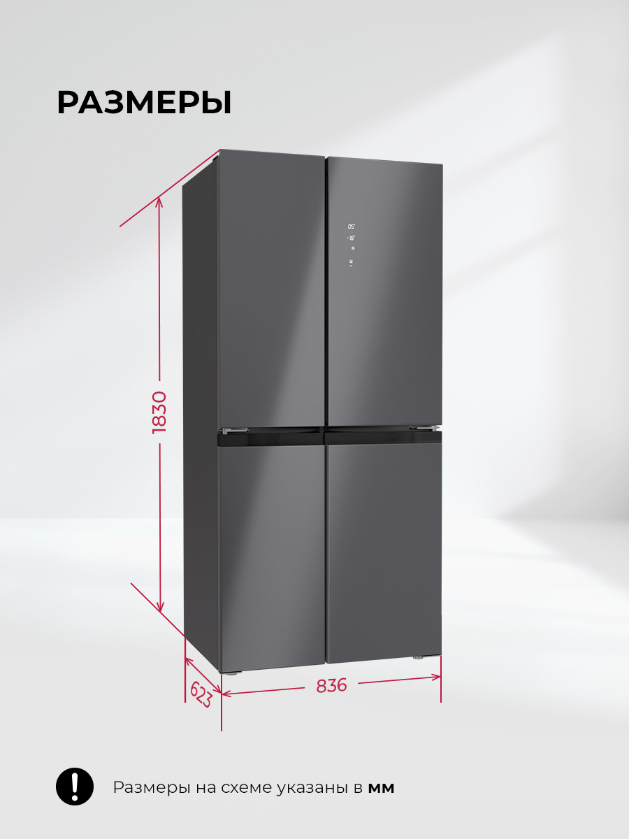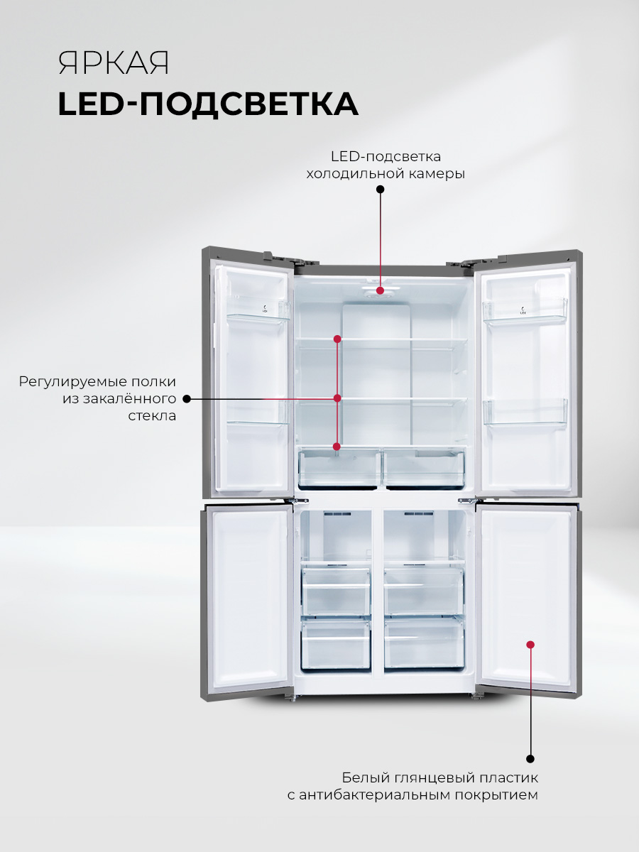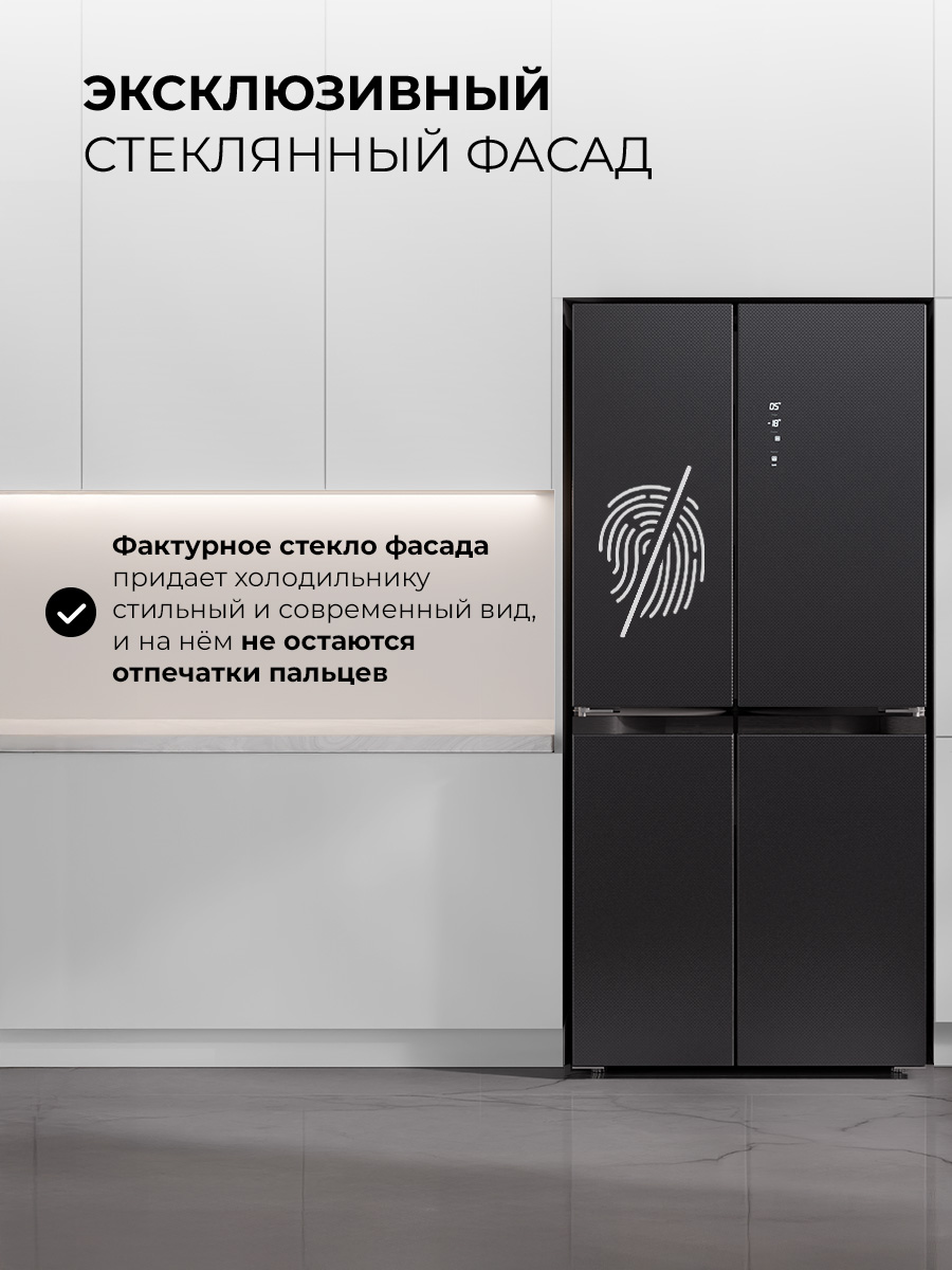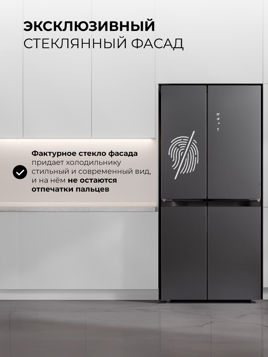 Модель LEX LCD 450 — передовые технологии и множество вариантов дизайна. Удобная панель управления и расположение дверей по типу CROSS DOOR помогут поддерживать нужные параметры хранения для каждого отделения. Холодильник с мощным, экономичным и тихим инверторным компрессором работает по технологии Total No Frost, которая не дает инею скапливаться внутри рабочих камер, значительно упрощая уход за устройством. Запатентованная многопоточная система охлаждения быстро и равномерно распределяет холодный воздух по всем зонам хранения. Модель позволяет хранить продукты при температуре от +8 °С в холодильном отделении до –23 °С в морозильном. А в режиме суперзаморозки можно установить еще более низкое значение: –28 °С. Суперрежимы позволяют максимально охладить содержимое во всех отделениях за короткое время. Это удобно, если вы загружаете сразу много продуктов, например, после похода в супермаркет или отключения электричества. В последнем случае также может пригодиться режим поддержания температуры, который будет работать 10 часов. Еще одна полезная функция — «Отпуск»: когда она активна, в каждой камере устанавливается температура, оптимальная одновременно и для сохранения свежести продуктов, и для уменьшения расхода электричества. Для этого холодильника можно выбрать один из шести стилей матового или глянцевого, стеклянного или металлического корпуса в разных цветах.
