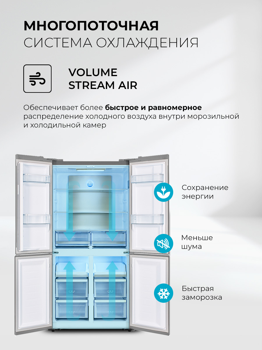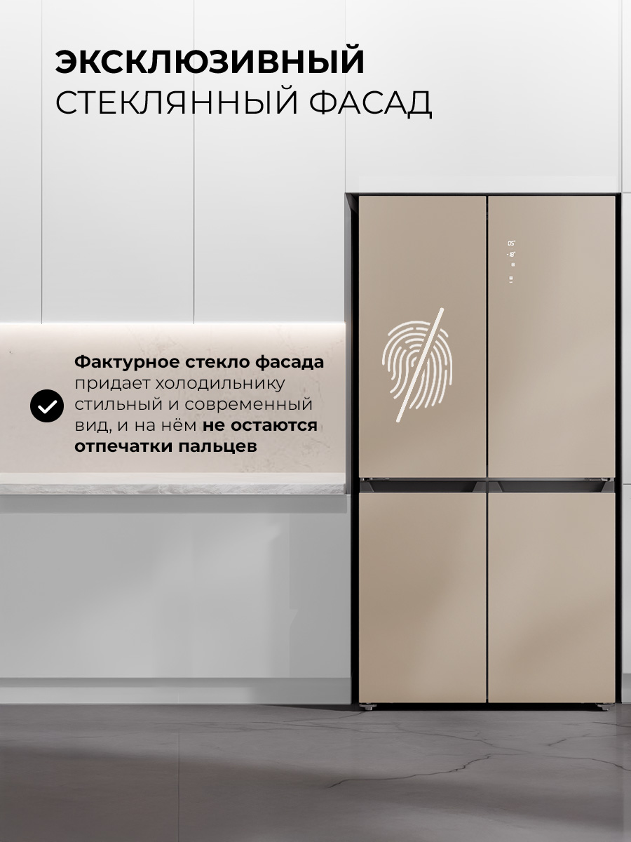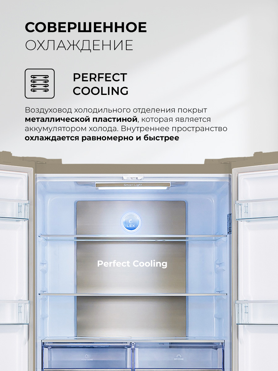 Холодильник LEX LCD 505 станет отличным выбором для большой семьи и стильной кухни. Объем 505 литров позволит разместить все, чего вам захочется. Охлаждение и заморозка происходят по системе No Frost, без образования инея, поэтому вам не нужно тратить время на размораживание. Современный инверторный компрессор работает эффективнее, тише и быстрее обычного, а технология LEX Volume Stream Air обеспечивает более равномерное охлаждение. Задняя стенка холодильной камеры покрыта металлом с высокой теплопроводностью, благодаря чему система охлаждения быстрее выравнивает колебания температуры. Модель типа CROSS DOOR имеет верхнее холодильное и два независимых нижних морозильных отделения. Такая конструкция помогает поддерживать подходящие условия хранения внутри каждой камеры, даже если вы часто открываете дверцы. Диапазон температур: +8…–23 °C, но с функцией суперзаморозки можно быстро снизить температуру в морозильном отделении до –28 °С. Похожий режим есть и в холодильной камере. Холодильник оснащен функцией сохранения температуры в течение 12 часов, которая выручит при отключении электричества. Благодаря понятной электронной панели управления и яркой подсветке вы всегда сможете точно контролировать условия хранения. А когда такой возможности нет, будет достаточно одного нажатия, чтобы автоматически установить в каждом отделении температуры, которые позволяют экономить энергию, но не влияют на качество хранения продуктов. Модель представлена в восьми вариантах оформления, которые отличаются цветом, текстурой и материалом отделки.