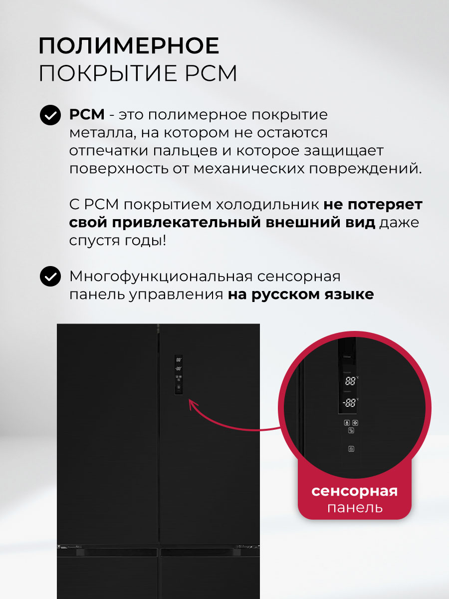 Холодильник LEX LCD 505 станет отличным выбором для большой семьи и стильной кухни. Объем 505 литров позволит разместить все, чего вам захочется. Охлаждение и заморозка происходят по системе No Frost, без образования инея, поэтому вам не нужно тратить время на размораживание. Современный инверторный компрессор работает эффективнее, тише и быстрее обычного, а технология LEX Volume Stream Air обеспечивает более равномерное охлаждение. Задняя стенка холодильной камеры покрыта металлом с высокой теплопроводностью, благодаря чему система охлаждения быстрее выравнивает колебания температуры. Модель типа CROSS DOOR имеет верхнее холодильное и два независимых нижних морозильных отделения. Такая конструкция помогает поддерживать подходящие условия хранения внутри каждой камеры, даже если вы часто открываете дверцы. Диапазон температур: +8…–23 °C, но с функцией суперзаморозки можно быстро снизить температуру в морозильном отделении до –28 °С. Похожий режим есть и в холодильной камере. Холодильник оснащен функцией сохранения температуры в течение 12 часов, которая выручит при отключении электричества. Благодаря понятной электронной панели управления и яркой подсветке вы всегда сможете точно контролировать условия хранения. А когда такой возможности нет, будет достаточно одного нажатия, чтобы автоматически установить в каждом отделении температуры, которые позволяют экономить энергию, но не влияют на качество хранения продуктов. Модель представлена в восьми вариантах оформления, которые отличаются цветом, текстурой и материалом отделки.