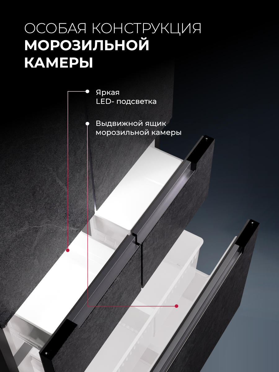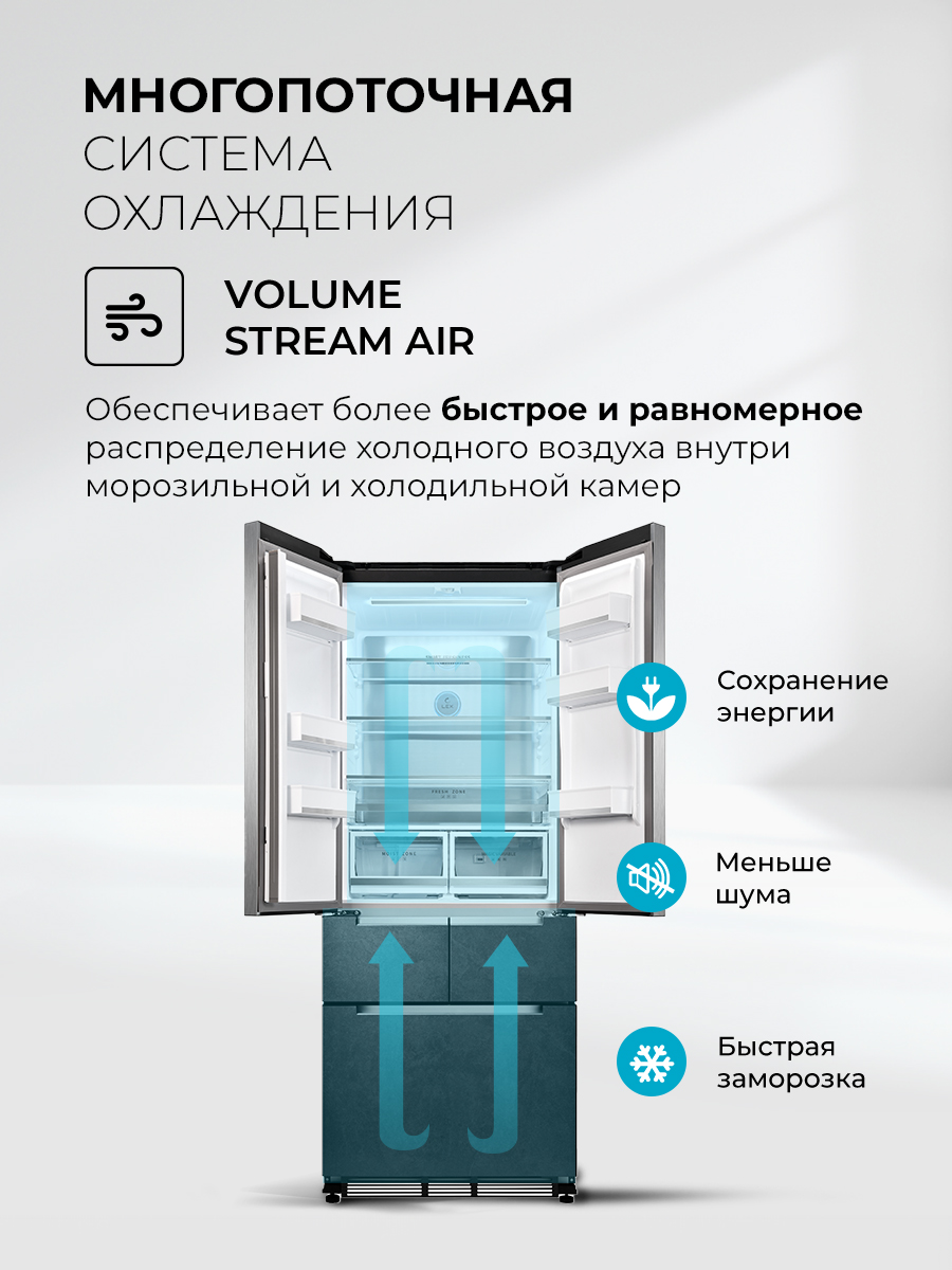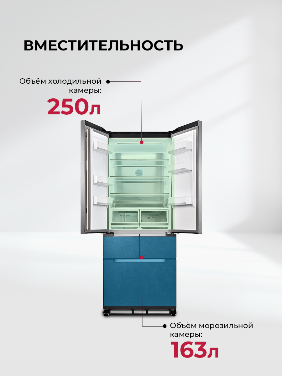 Технология No Frost во всех камерах обеспечивает равномерное охлаждение, исключая образование инея и упрощая уход. Зоны с независимой регулировкой температуры и влажности позволяют настроить идеальные параметры для продуктов, которым нужны особые условия. Функции суперохлаждения и суперзаморозки помогут быстро снизить температуру свежих продуктов, сохранив их вкусовые качества.