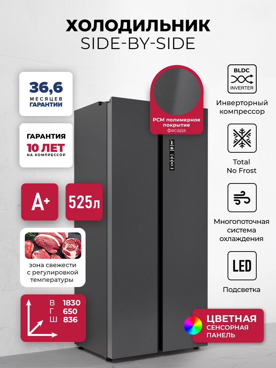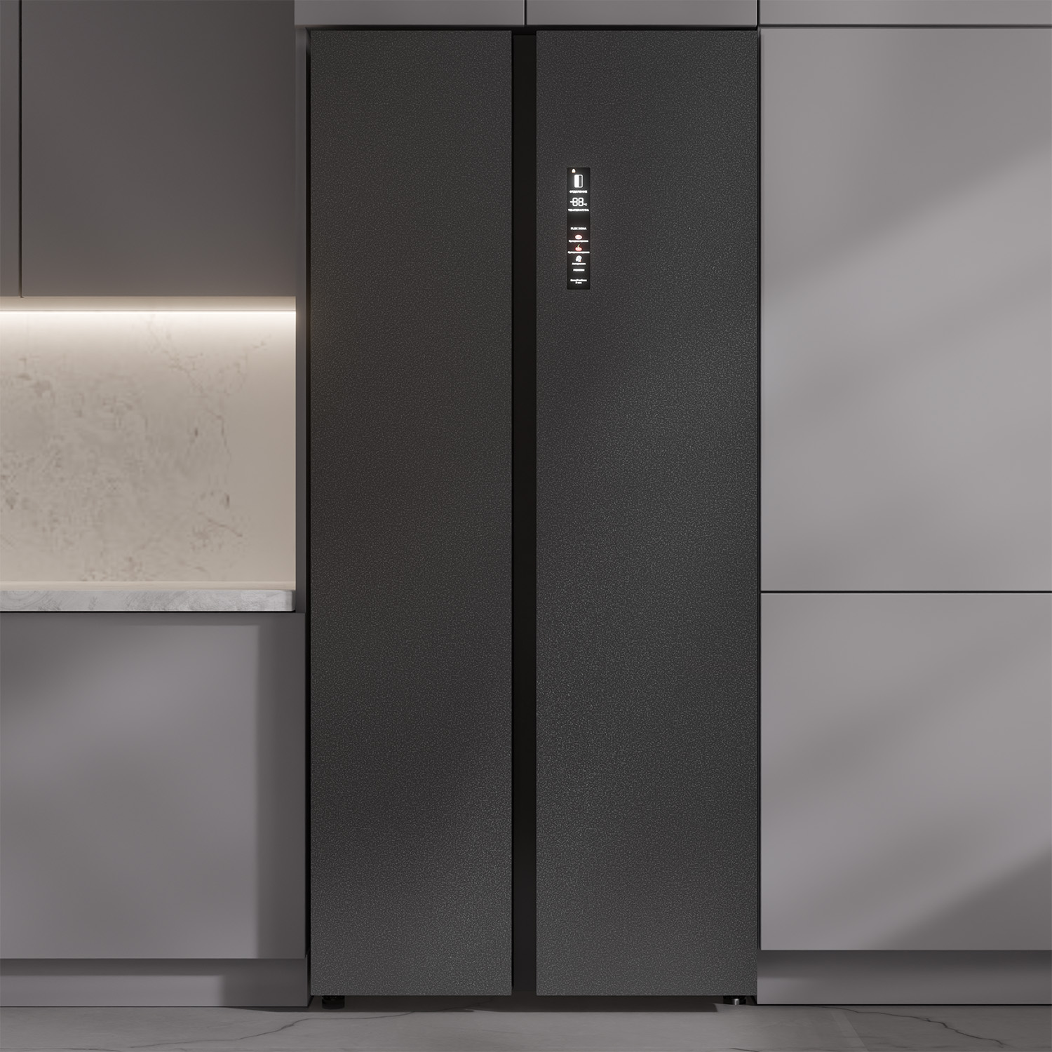 Темно-серый металлический фасад, черный корпус
