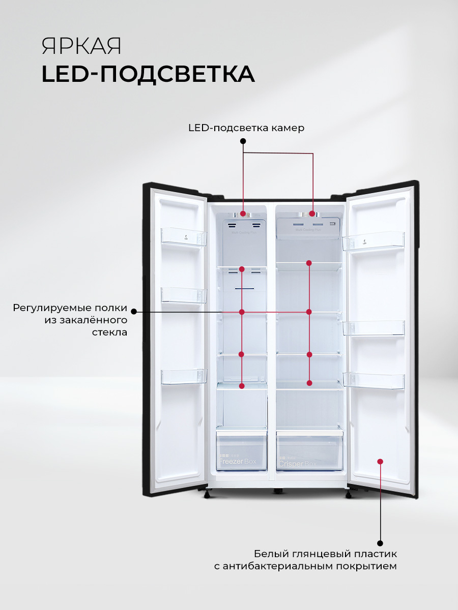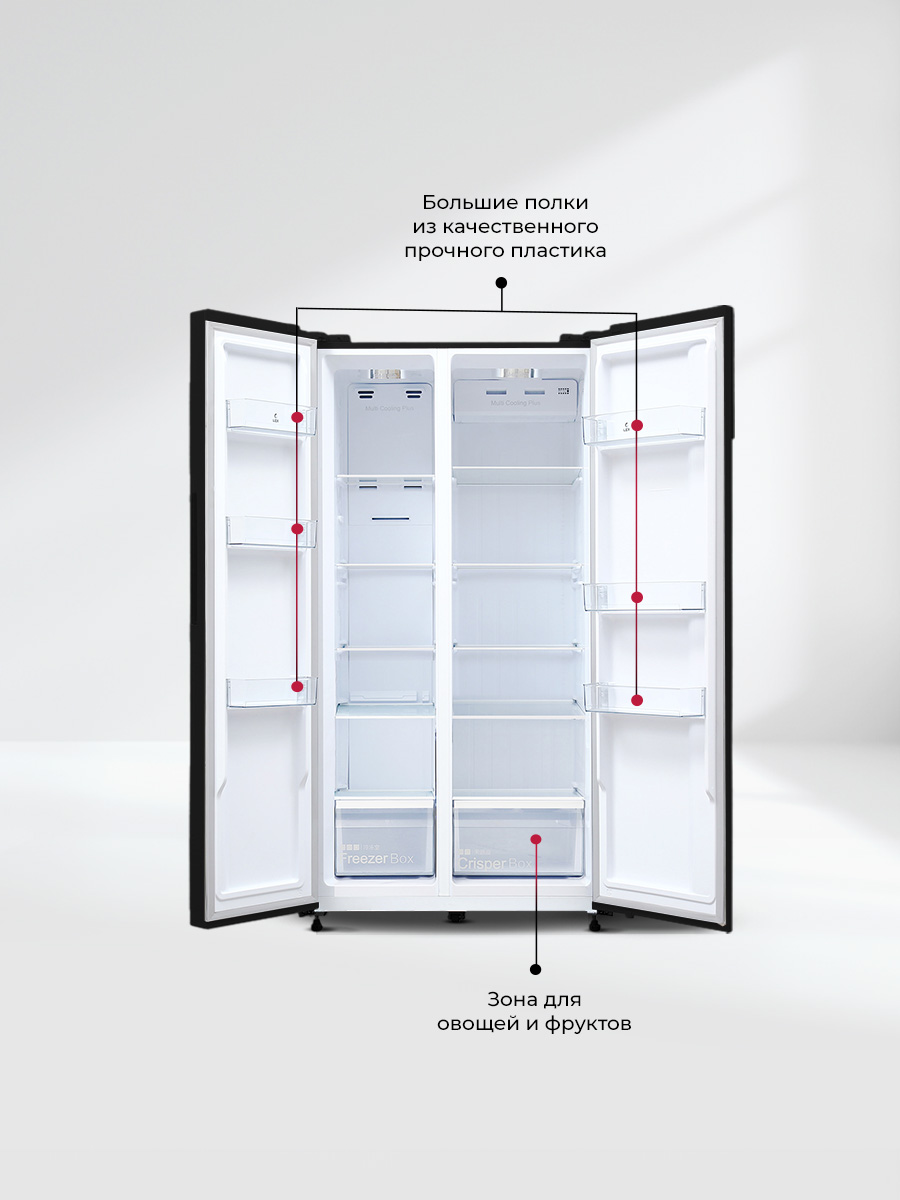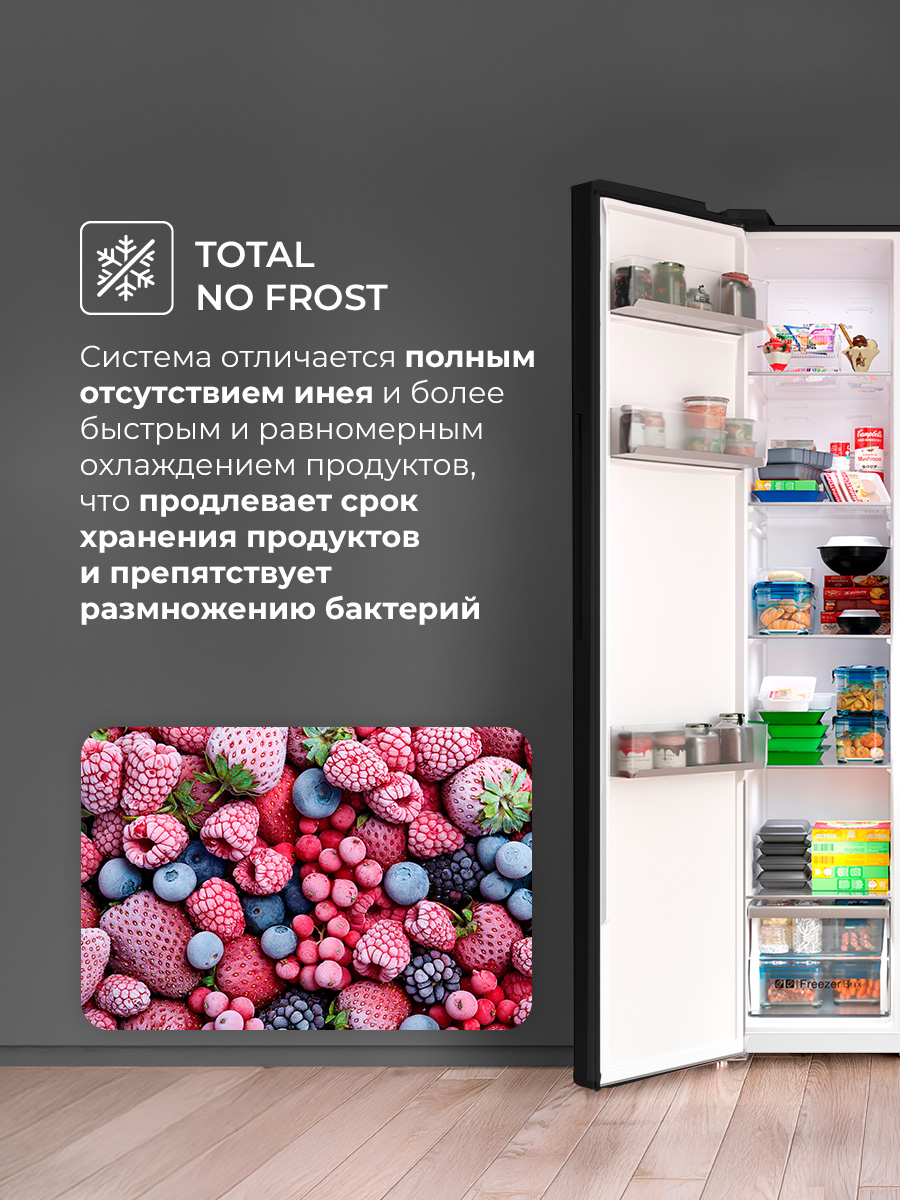 Двухкамерный холодильник LSB 530 вместит все вкусное и полезное. Fresh-зона и многопоточная система вентиляции обеспечат свежесть любого продукта, два контура охлаждения, панель управления и дисплей позволят точно контролировать температуру в каждом отделении. Для простоты эксплуатации модель имеет несколько предустановленных режимов работы: суперзаморозка и быстрое охлаждение, а также смарт-режим и поддержание температуры в течение нескольких часов, которое пригодится при неполадках с электричеством. Благодаря расположению дверей SIDE BY SIDE продукты в обеих камерах можно размещать на комфортных для вас уровнях. Технология Total No Frost делает уход за холодильником максимально легким, чтобы у вас было больше свободного времени, а мощный инверторный компрессор работает почти бесшумно.