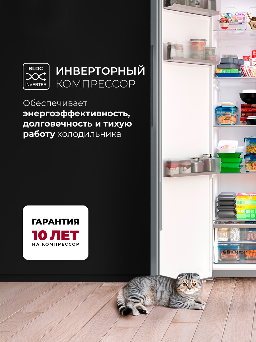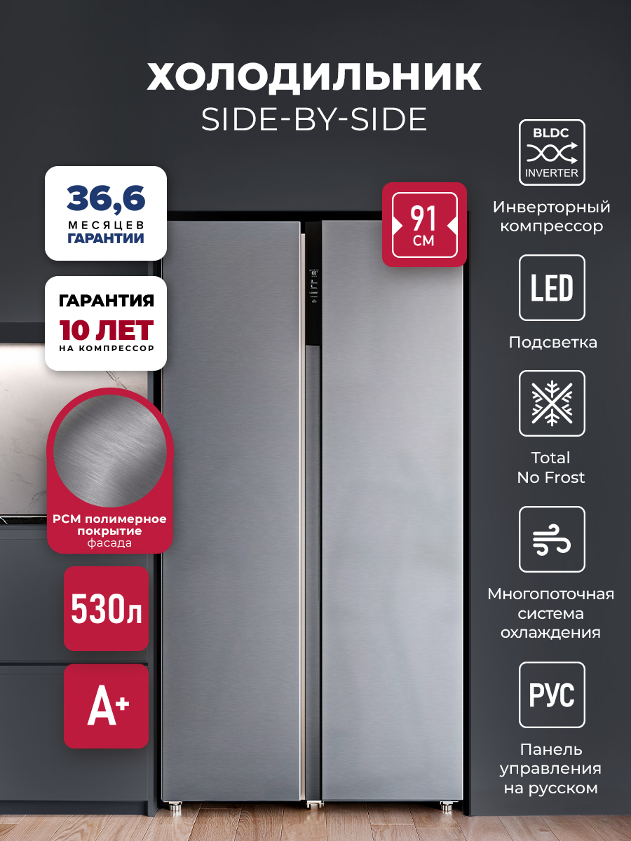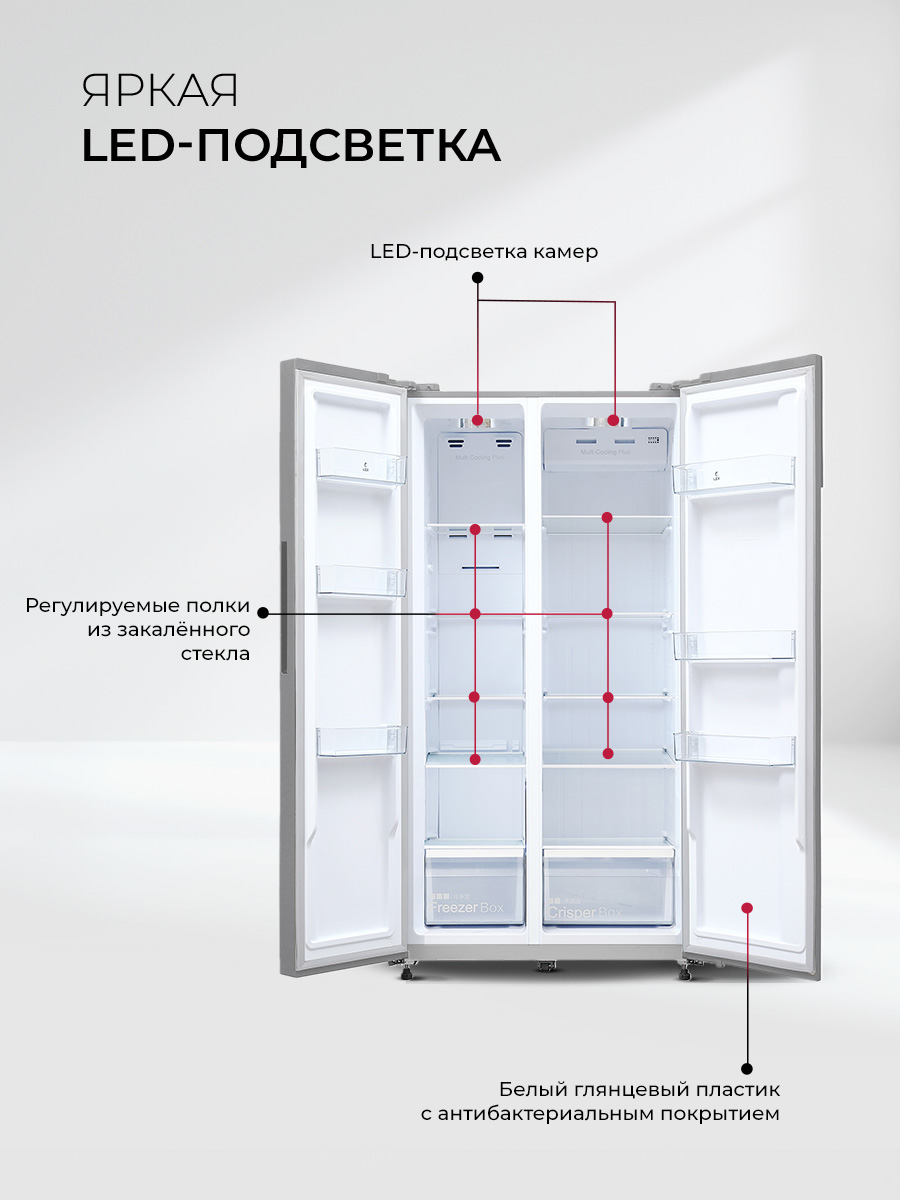 Двухкамерный холодильник LSB 530 вместит все вкусное и полезное. Fresh-зона и многопоточная система вентиляции обеспечат свежесть любого продукта, два контура охлаждения, панель управления и дисплей позволят точно контролировать температуру в каждом отделении. Для простоты эксплуатации модель имеет несколько предустановленных режимов работы: суперзаморозка и быстрое охлаждение, а также смарт-режим и поддержание температуры в течение нескольких часов, которое пригодится при неполадках с электричеством. Благодаря расположению дверей SIDE BY SIDE продукты в обеих камерах можно размещать на комфортных для вас уровнях. Технология Total No Frost делает уход за холодильником максимально легким, чтобы у вас было больше свободного времени, а мощный инверторный компрессор работает почти бесшумно.