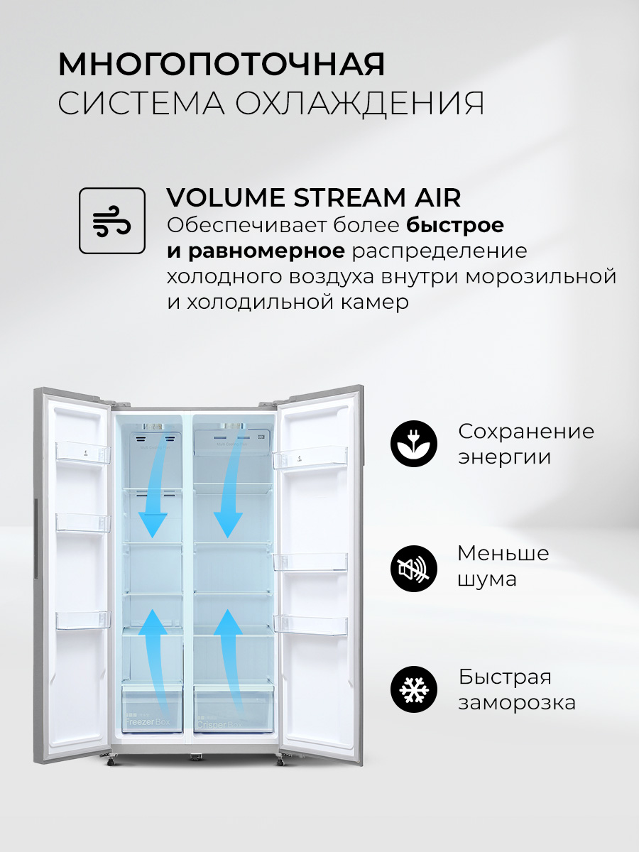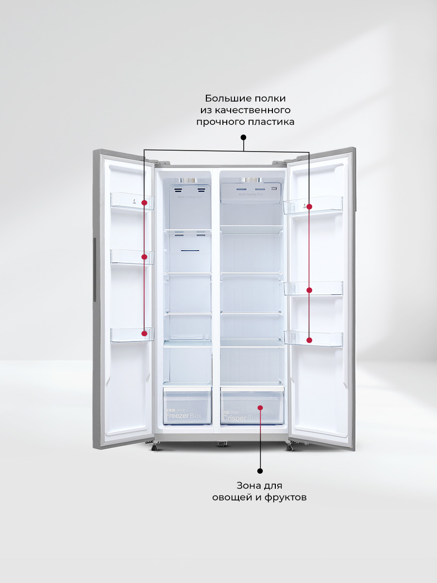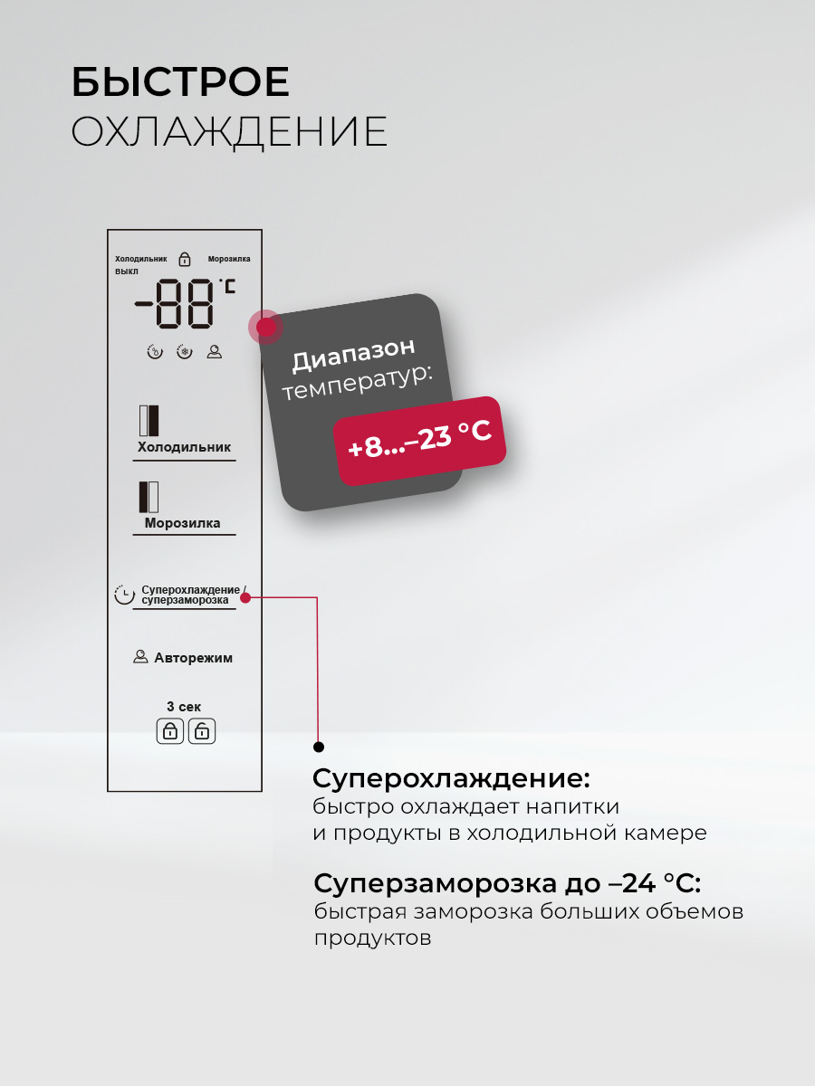 Двухкамерный холодильник LSB 530 вместит все вкусное и полезное. Fresh-зона и многопоточная система вентиляции обеспечат свежесть любого продукта, два контура охлаждения, панель управления и дисплей позволят точно контролировать температуру в каждом отделении. Для простоты эксплуатации модель имеет несколько предустановленных режимов работы: суперзаморозка и быстрое охлаждение, а также смарт-режим и поддержание температуры в течение нескольких часов, которое пригодится при неполадках с электричеством. Благодаря расположению дверей SIDE BY SIDE продукты в обеих камерах можно размещать на комфортных для вас уровнях. Технология Total No Frost делает уход за холодильником максимально легким, чтобы у вас было больше свободного времени, а мощный инверторный компрессор работает почти бесшумно.