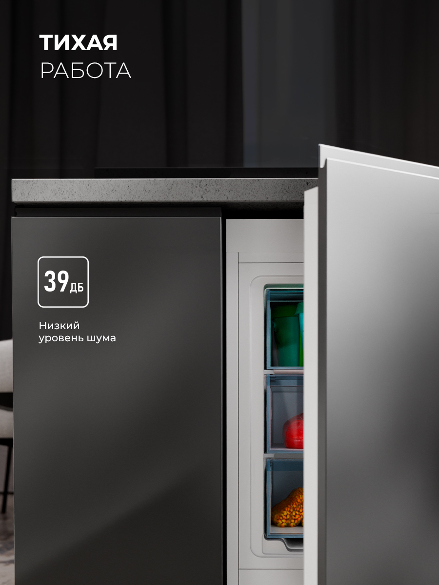 – Уровень шума всего 39 дБ. Вы сможете наслаждаться тишиной и комфортом в своей кухне, не беспокоясь о шуме от работы шкафа.