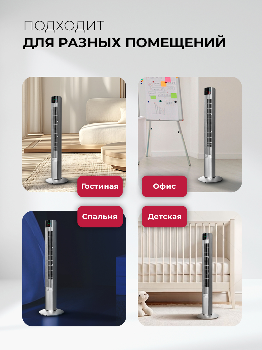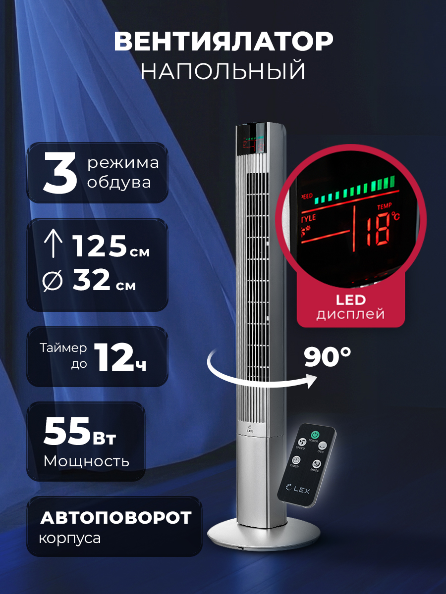 Колонный вентилятор LEX LXFC 8370 предназначен для эффективного охлаждения воздуха в помещении в летнюю жару. Вертикальная конструкция и высота 1250 мм позволяют равномерно распределять поток воздуха, не загромождая пространство.