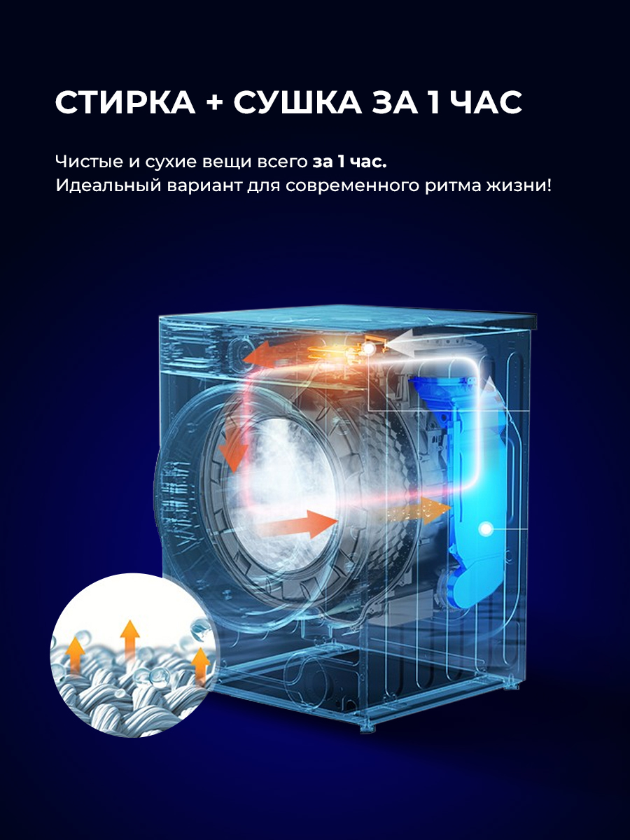 - Сушка — идеально сухие и ухоженные вещи сразу после стирки;