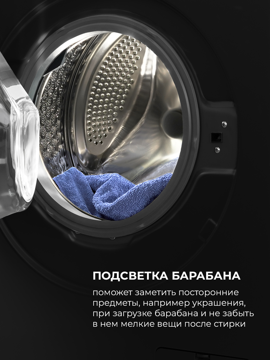- Функция обработки паром позаботится о ваших вещах и при этом справится с самыми стойкими загрязнениями и уничтожит 99 % бактерий. Пар, проникая в волокна ткани, cмягчает ее и дезинфицирует.