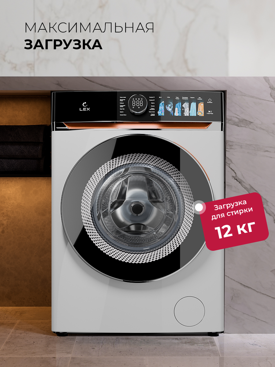 Модель LEX LWM12012 Lux — это отдельностоящая стиральная машина с сенсорным управлением и премиальным дизайном, доступная в черном и белом цветах. Важные преимущества: