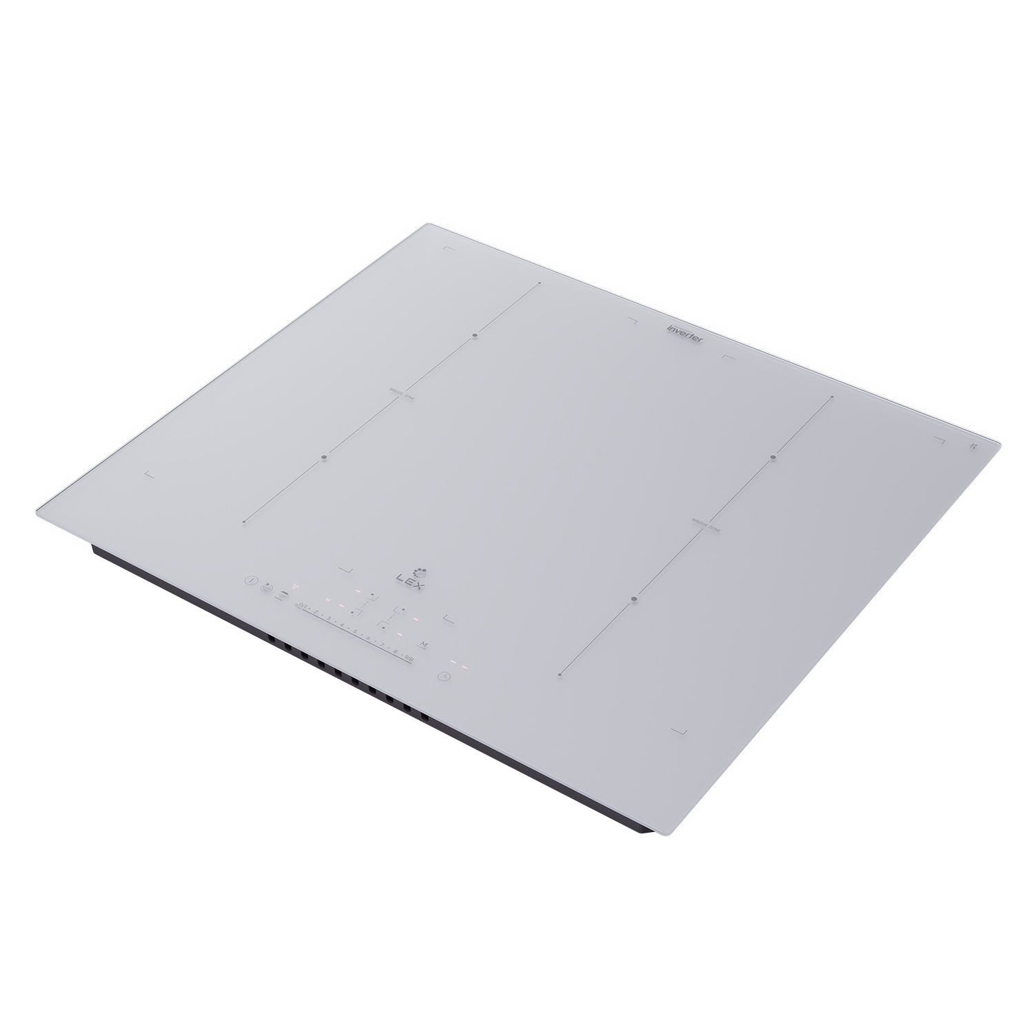 Электрическая индукционная варочная панель LEX EVI 641B I WH имеет четыре конфорки и сенсорное управление. Ширина для встраивания 600 мм. Инверторный индукционный нагревательный элемент демонстрирует высокую скорость нагрева, существенно экономит электроэнергию и сокращает время приготовления блюд. Панель имеет FlexZone расширенной конфигурации, которую удобно использовать для посуды нестандартных размера и формы. Модель снабжена кнопкой блокировки панели, индикатором остаточного тепла, защитой от перегрева, распознаванием наличия посуды. Наличие функции Boost позволяет ускорить процессы приготовления. Функция Stop&Go дает возможность при необходимости одним нажатием приостановить и продолжить работу с сохранением температурных режимов и таймера. Несмотря на общее мнение, что поверхность в индукционной плите не нагревается, это не совсем так. Она нагревается от самой посуды и нужно быть аккуратными. Сразу после снятия кастрюли или сковороды, поверхность горячая, хотя и практически мгновенно остывает. И уже через несколько секунд её можно трогать рукой.