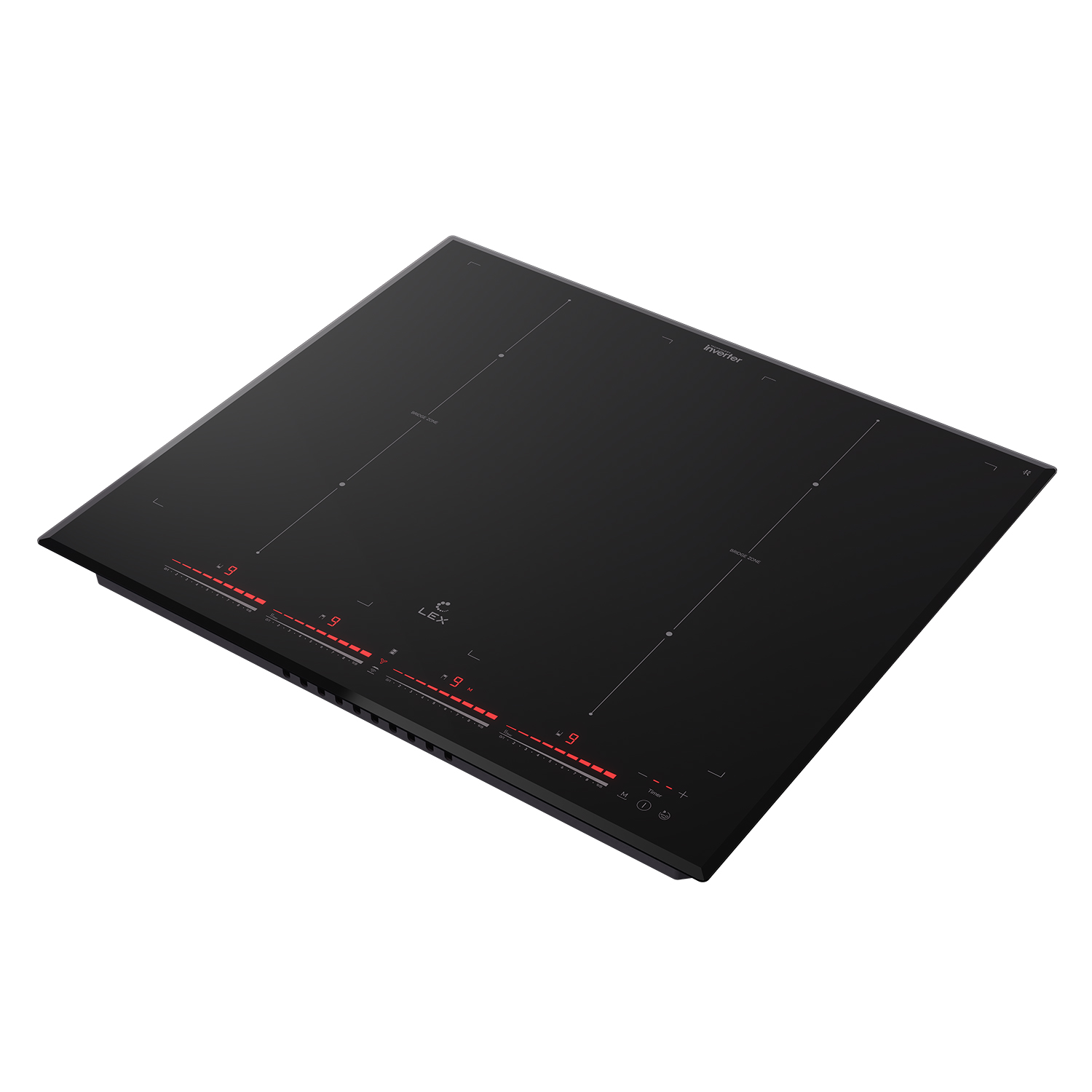 Электрическая индукционная варочная панель LEX EVI 641C I BL имеет четыре конфорки и индивидуальное слайдерное управление для каждой зоны нагрева. Ширина для встраивания 600 мм. Инверторный индукционный нагревательный элемент демонстрирует высокую скорость нагрева, существенно экономит электроэнергию и сокращает время приготовления блюд. Панель имеет FlexZone расширенной конфигурации, которую удобно использовать для посуды нестандартных размера и формы. Модель снабжена кнопкой блокировки панели, индикатором остаточного тепла, защитой от перегрева, распознаванием наличия посуды. Наличие функции Boost позволяет ускорить процессы приготовления. Функция Stop&Go дает возможность при необходимости одним нажатием приостановить и продолжить работу с сохранением температурных режимов и таймера. Несмотря на общее мнение, что поверхность в индукционной плите не нагревается, это не совсем так. Она нагревается от самой посуды и нужно быть аккуратными. Сразу после снятия кастрюли или сковороды, поверхность горячая, хотя и практически мгновенно остывает. И уже через несколько секунд её можно трогать рукой.